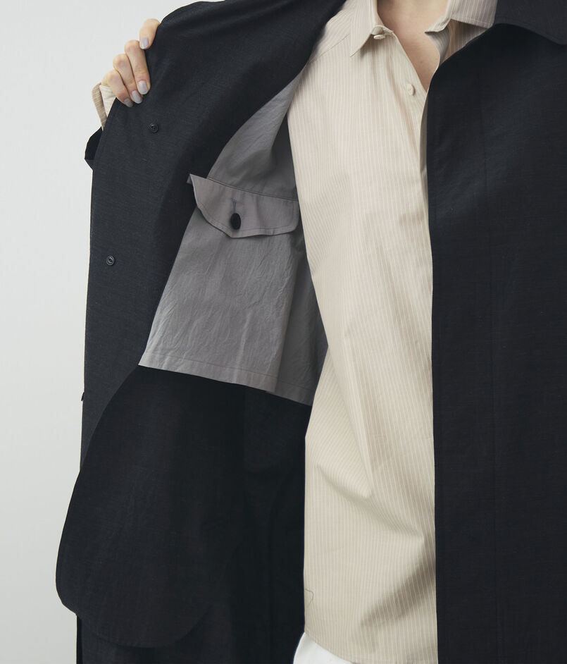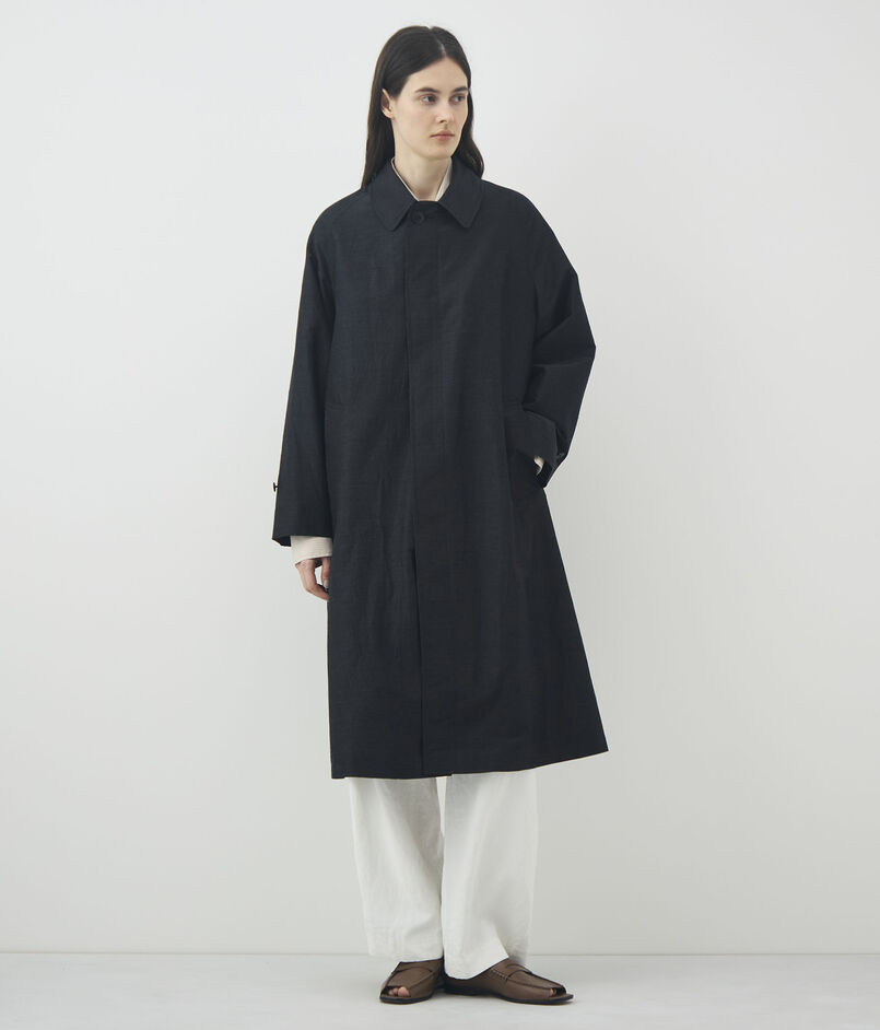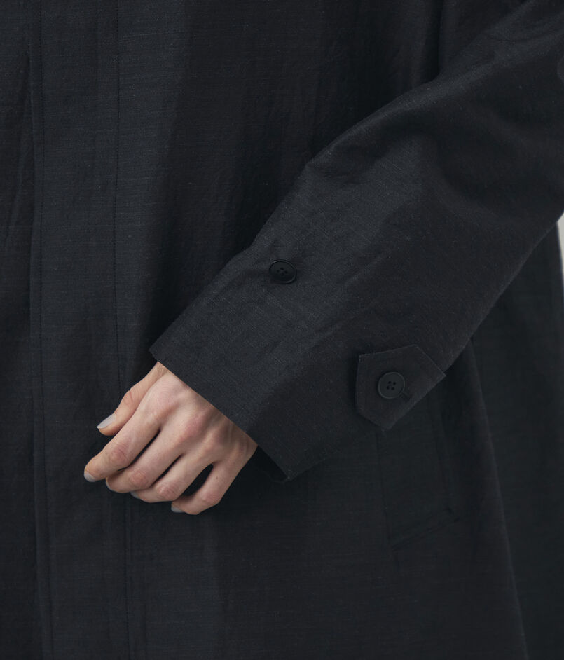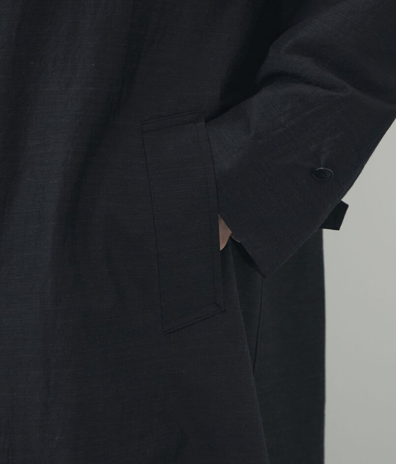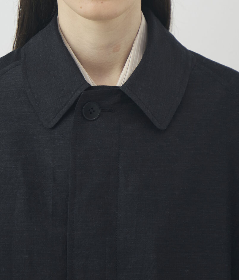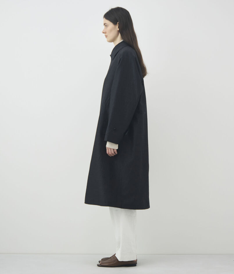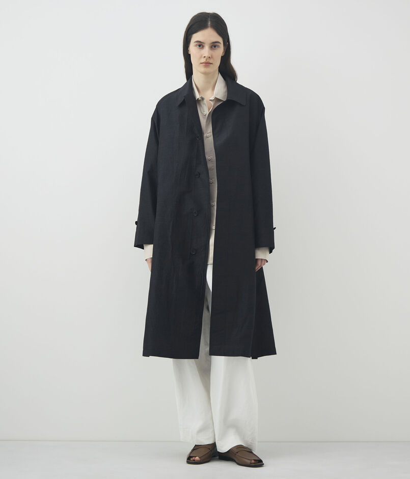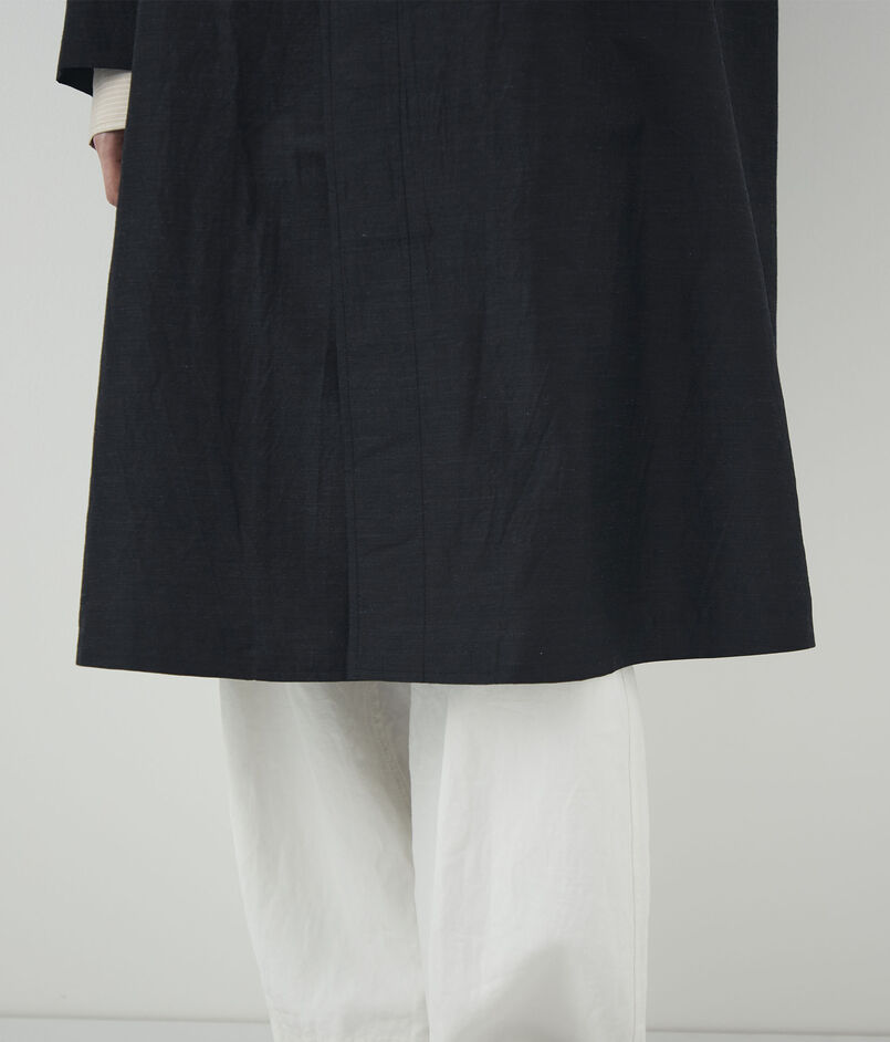 ほど良いハリ感とさりげない光沢が美しい、ウールシルクのタイプライター素材を使用したコート。