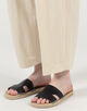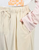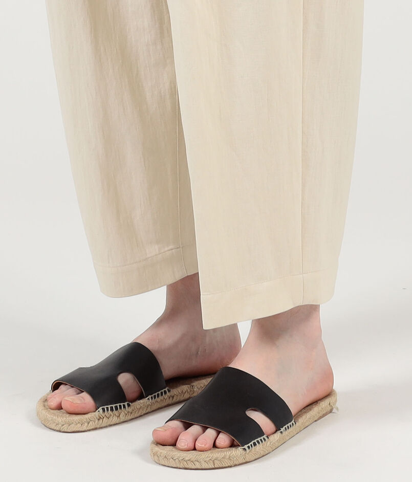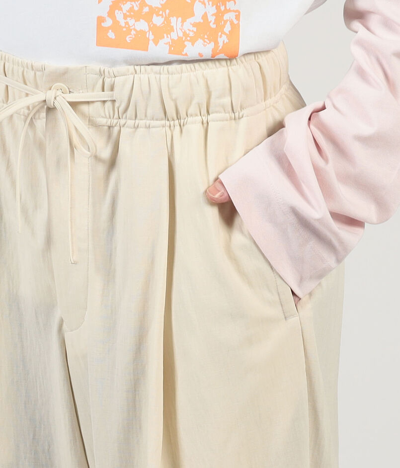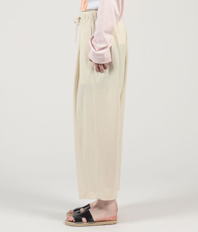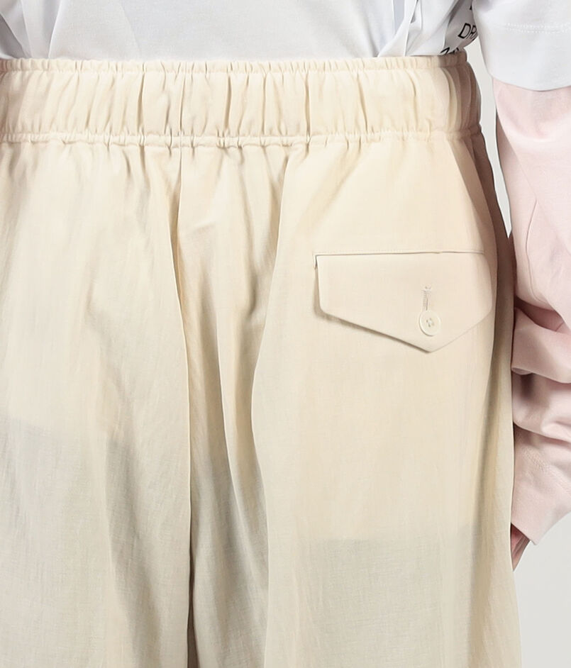 ウエストはゴム仕様で腰裏にはグログランテープの滑りどめをつけたエレガントな印象のドレス仕様イージーパンツ。