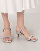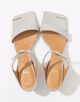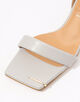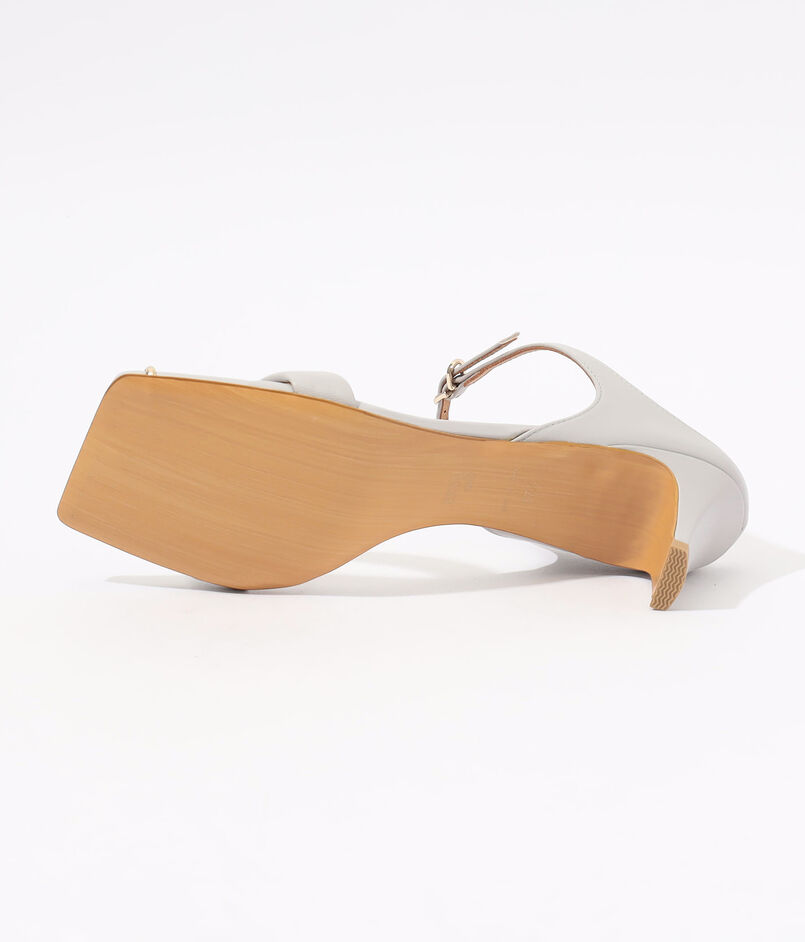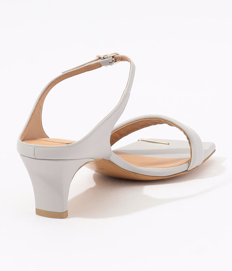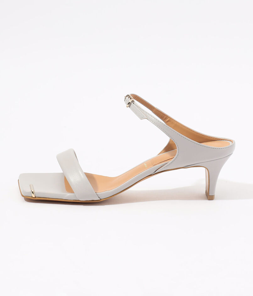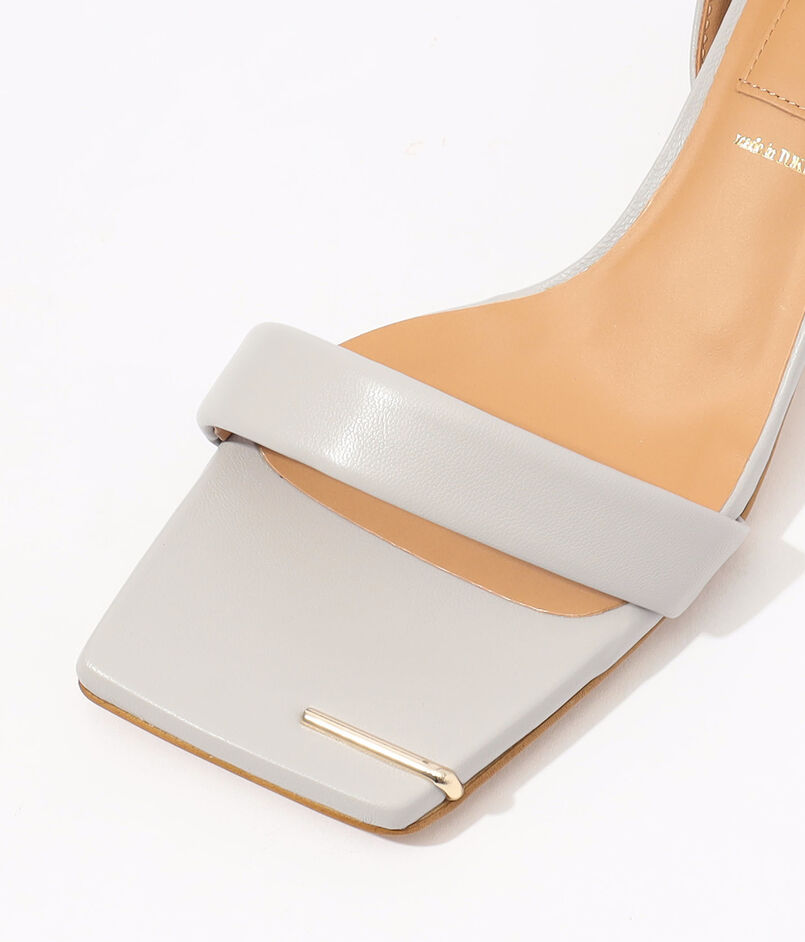 ミニマルを極めたフォルムに、華奢なストラップとスクエアトゥが足元を美しく引き立てるヌーディーなサンダル。