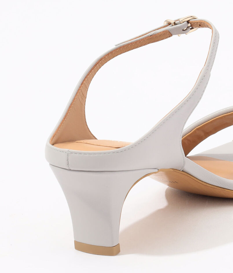 肌に溶け込むような繊細なシルエットとさりげないメタルのアクセントが調和し、モダンで品のある足元を演出してくれる一足です。