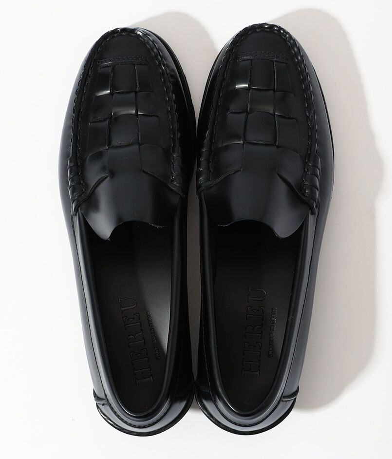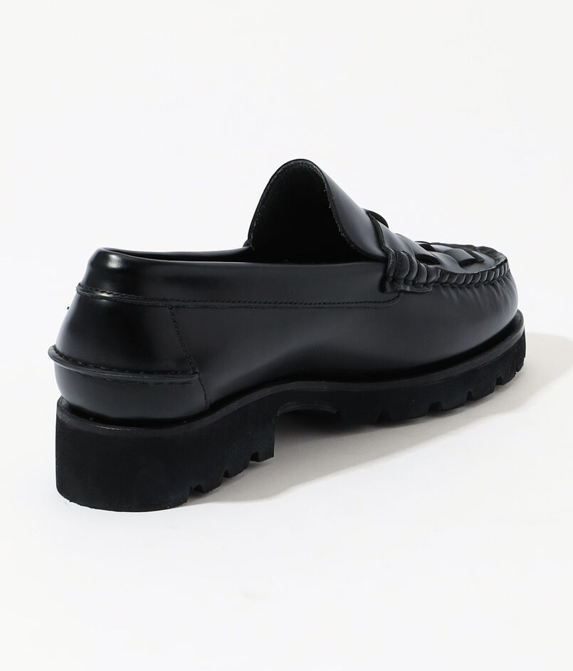 スペイン産のフルグレインカーフレザーを使用し、フロント部分には手作業による編み込みディテールを施したローファー。