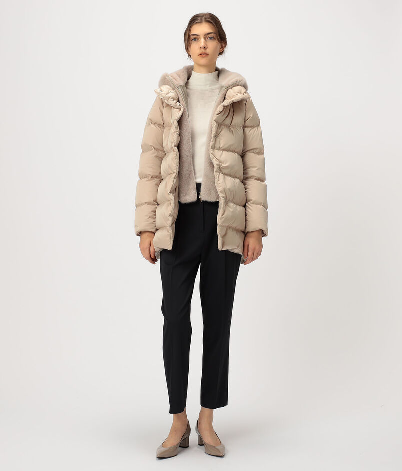 柔らかな着心地と高い機能性を兼ね備えた、〈HERNO〉の定番素材とエコファーを組み合わせたハイブリッドAラインコート。