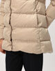 フード部分から続く前立ては着脱可能で、撥水性と保温性に優れたポリエステル素材を使用しています。
