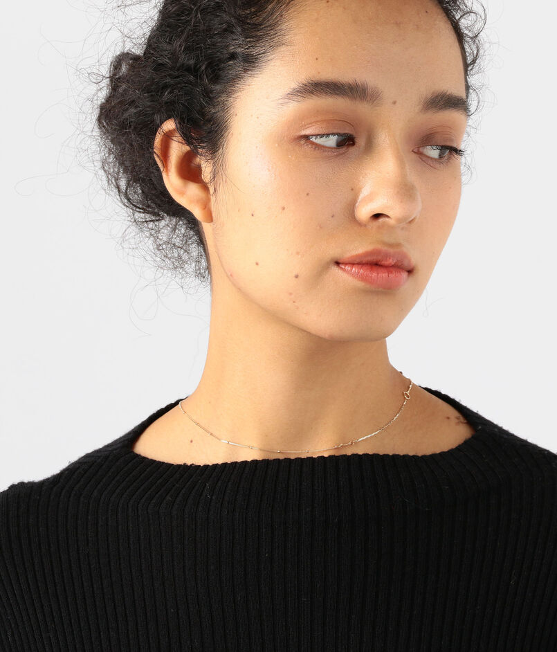 3種類のチェーンを〈Hirotaka〉らしくモダンに組み合わせた〈TOMORROWLAND〉別注ネックレス。