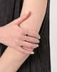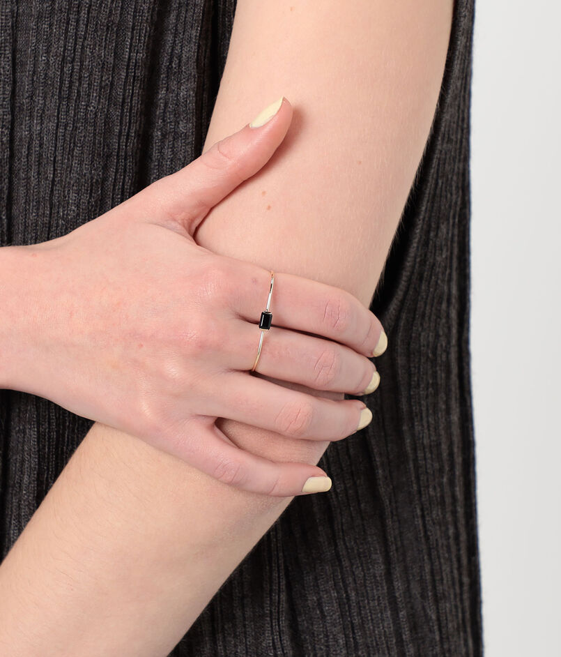 二本の指を通して着用する独創的なフォルムは、ジュエリーをアートピースのように演出し、ミニマルな装いにも奥行きのある表情をプラス。