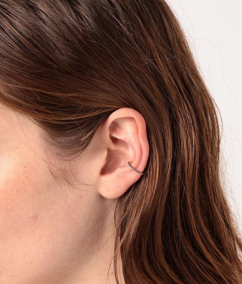 ダイヤモンドの冴えた輝きのラインを楽しむフープタイプのイヤーカフ。