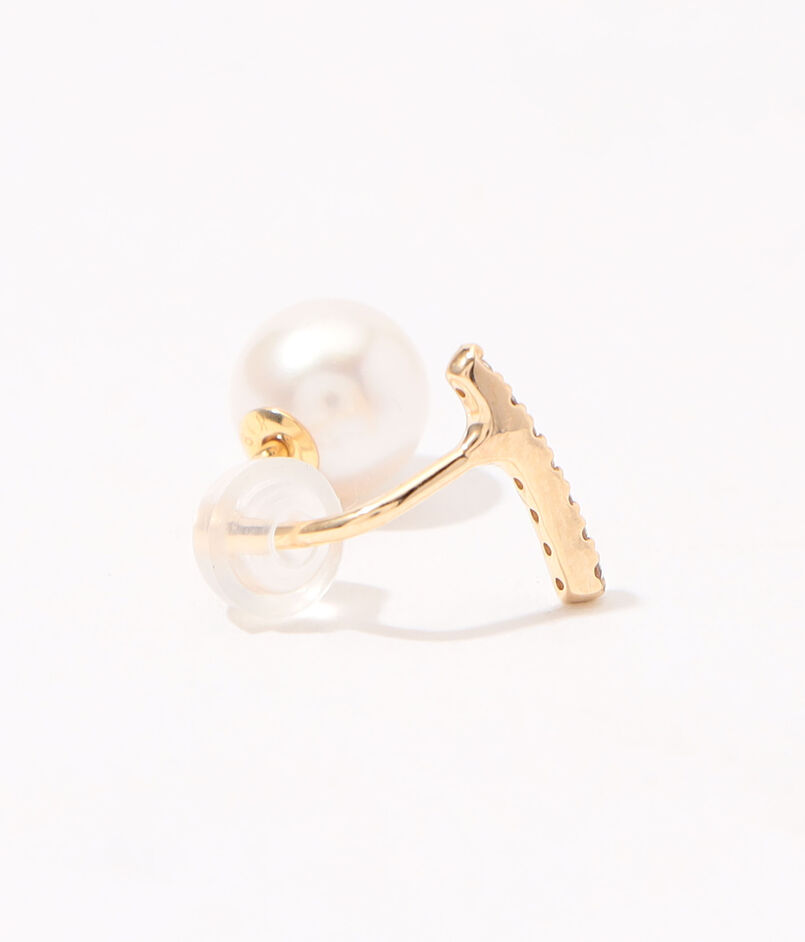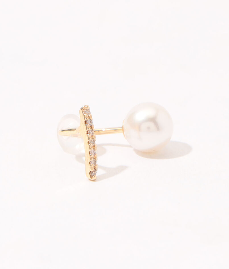 ダイヤモンドのショートバーとパールキャッチのコンビネーション。