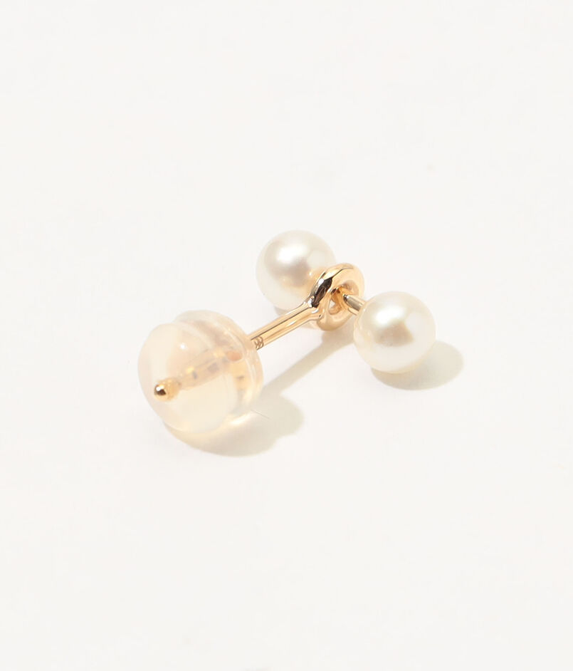 スティックに配した二粒のパールが、上品で洗練された表情を耳元にもたらします。