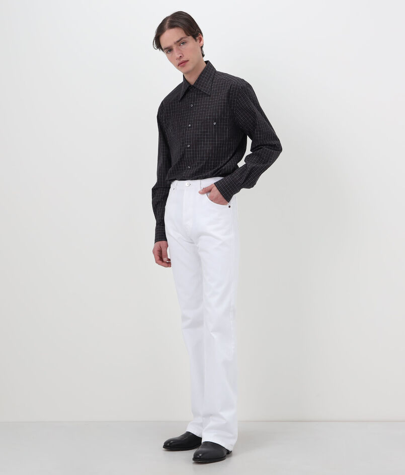 HUSBANDS コットン ストレート ホワイトデニムパンツ