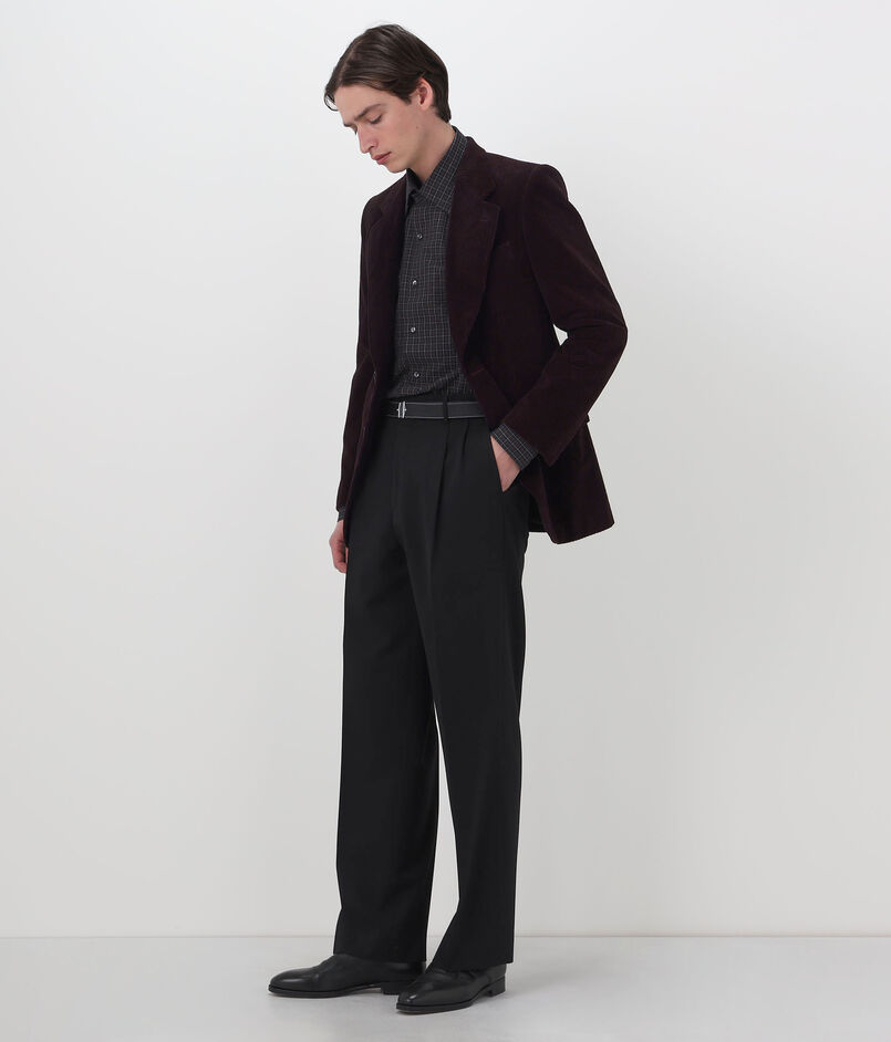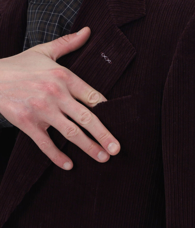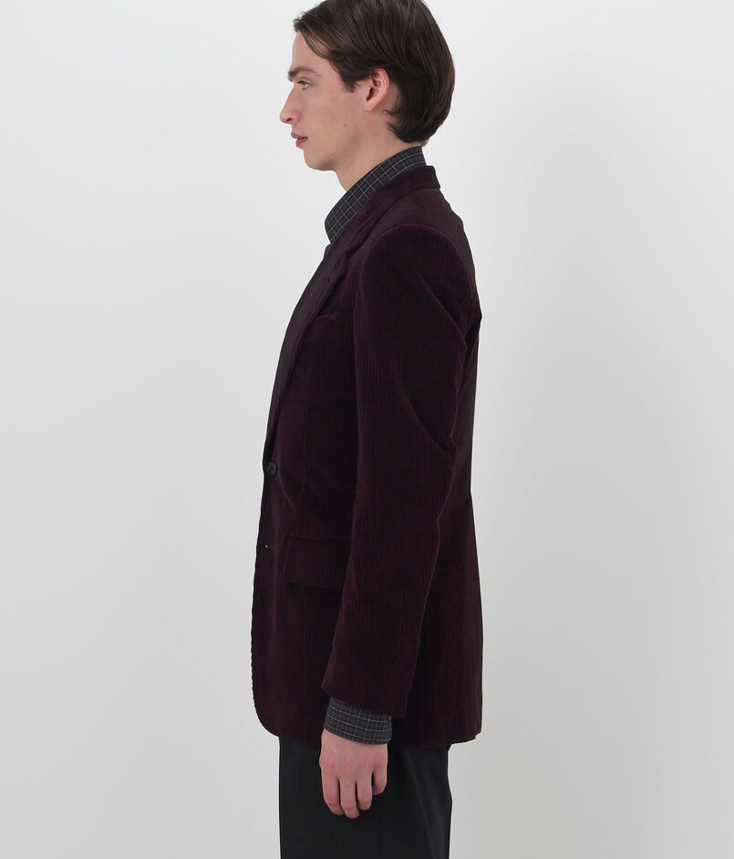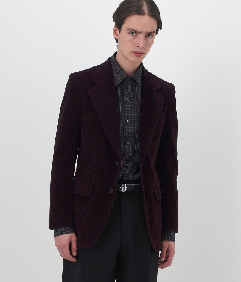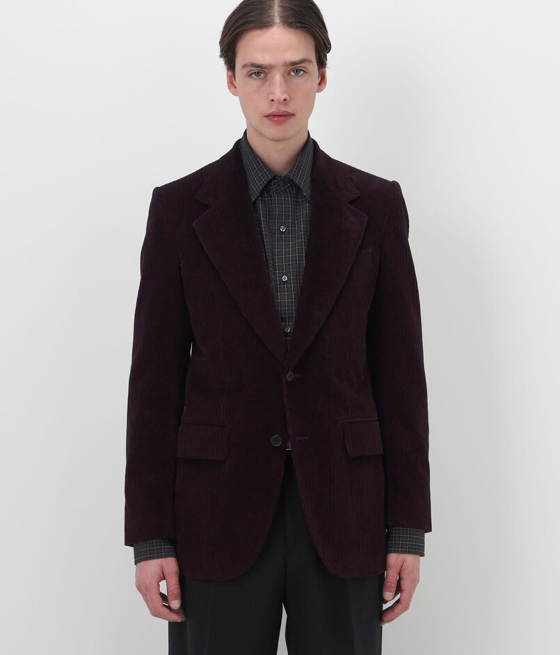 構築的なシルエットのコーデュロイ素材の2Bジャケット。