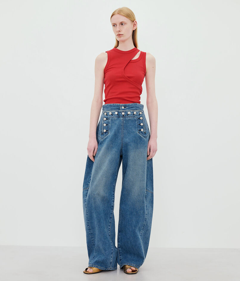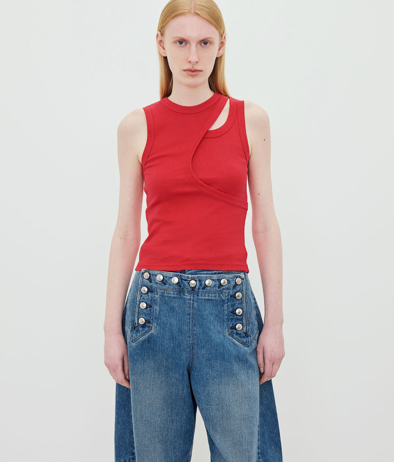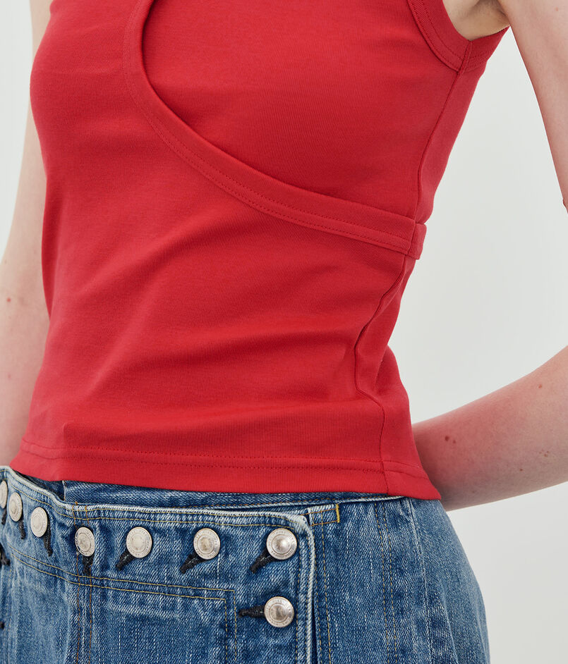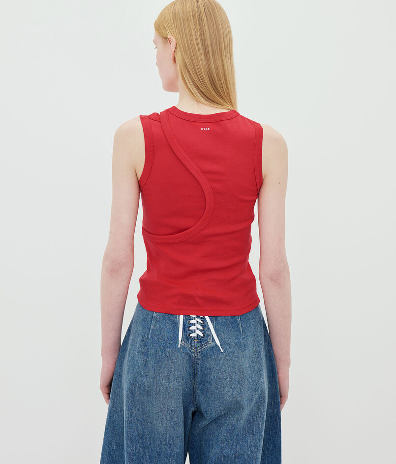 計算し尽くされたレイヤードデザインが、一枚で存在感を放つタンクトップ。