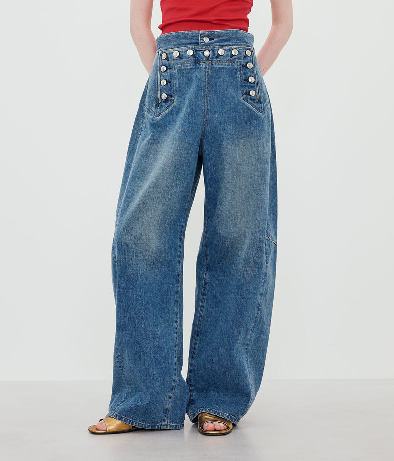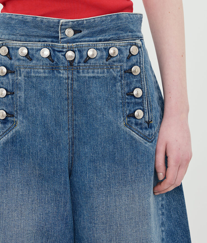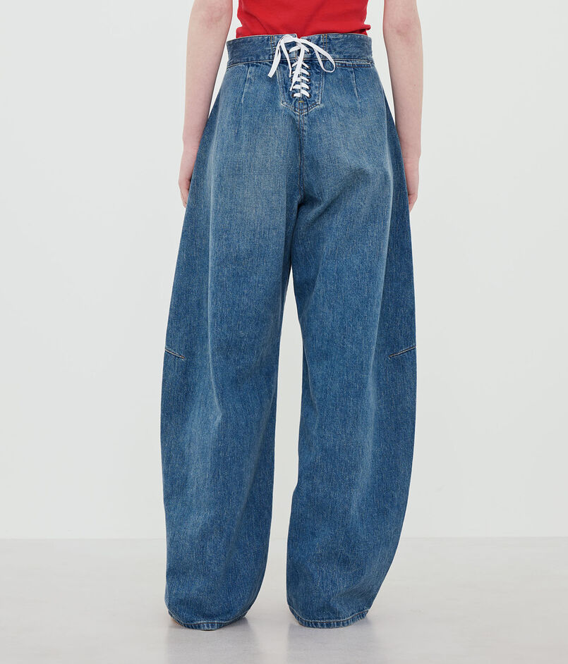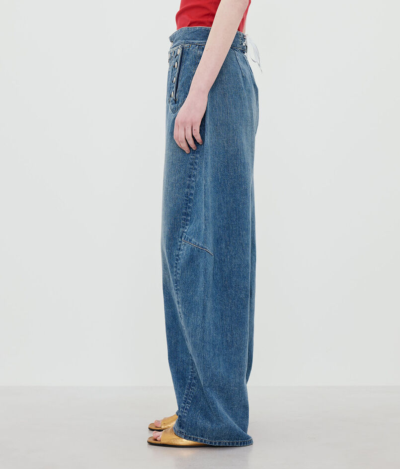 今季のルックでも存在感を放った、セーラーパンツのディテールが目を惹くバレルデニム。