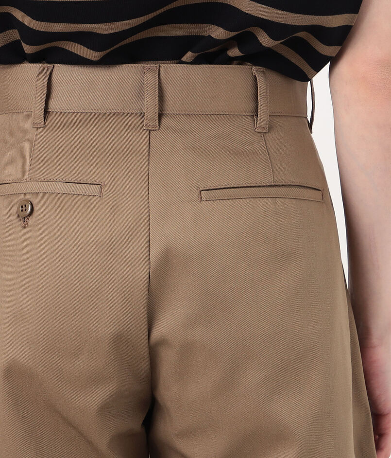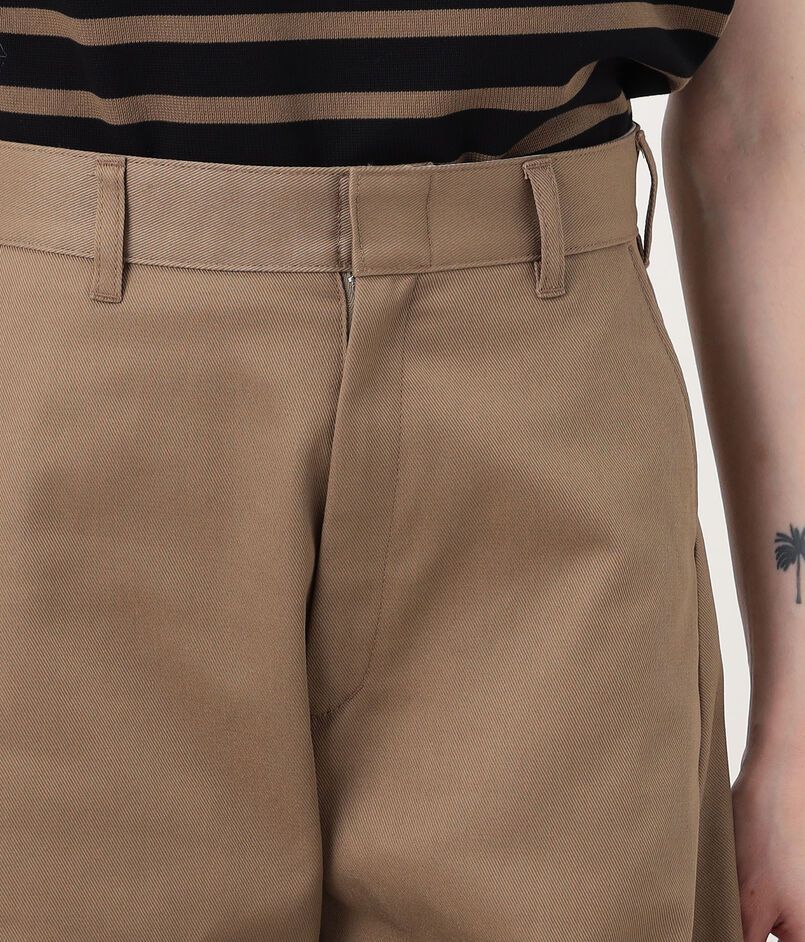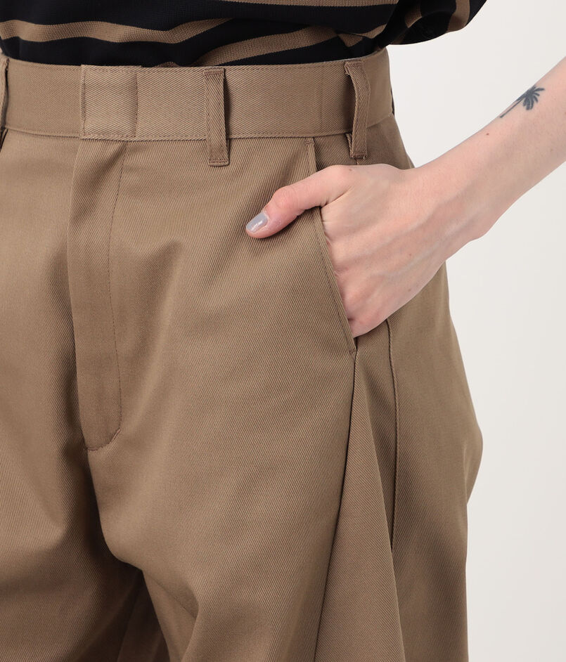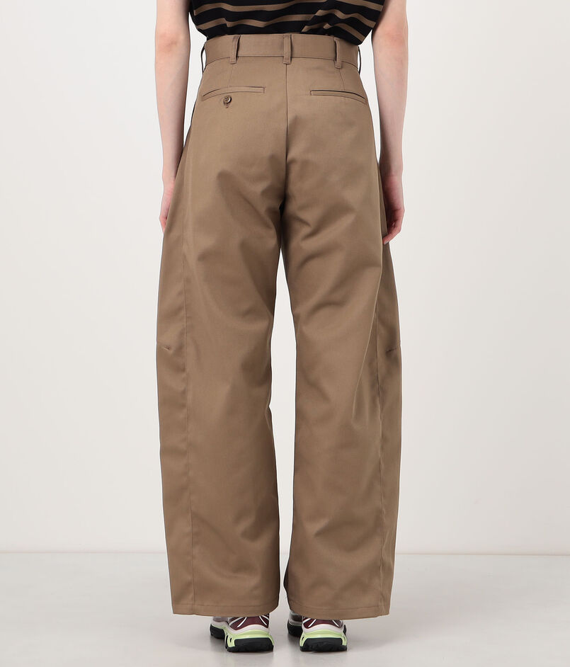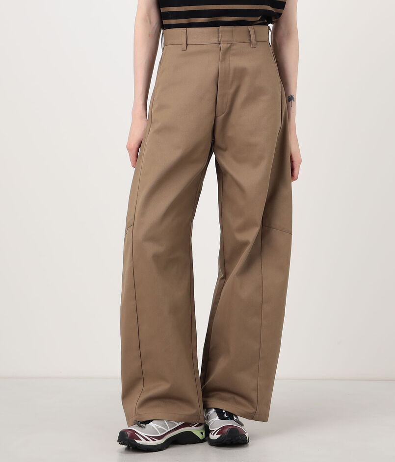 ワークパンツをベースに、サイドに切り替えを施すことで立体的なバレルシルエットに仕上げたパンツ。