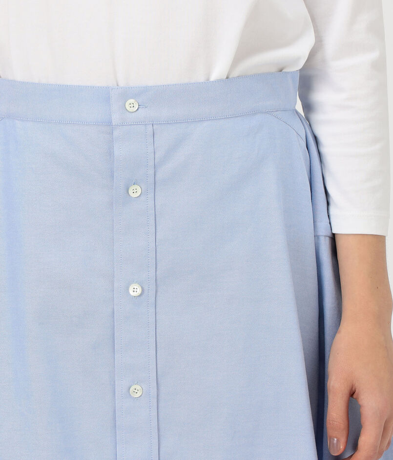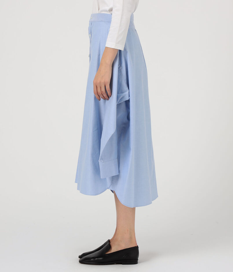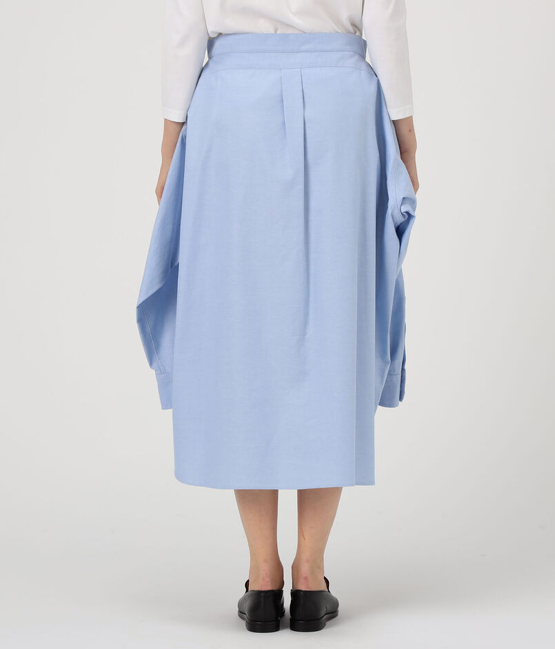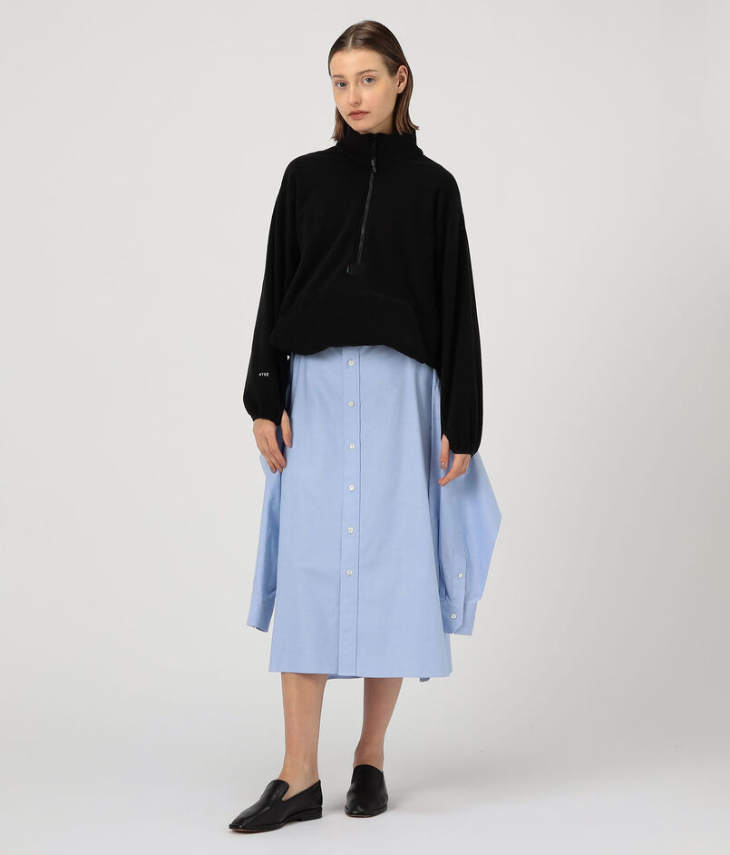 重たくなりがちな冬のコーディネートに軽やかな動きをもたらすコットンオックス生地で、パンツに重ねたりコートの裾から覗かせたりと、スタイリングのアクセントとして活躍してくれる一着です。
