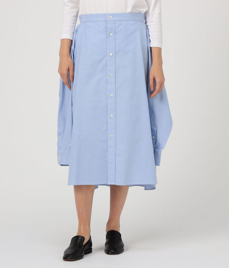 今季のコレクションのキーアイテムでもあるシャツディテールのスカート。