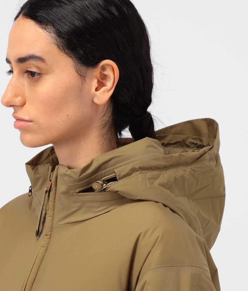 ハイネックにはフードが内蔵され、タウンユースにはもちろんアウトドアシーンにも最適。