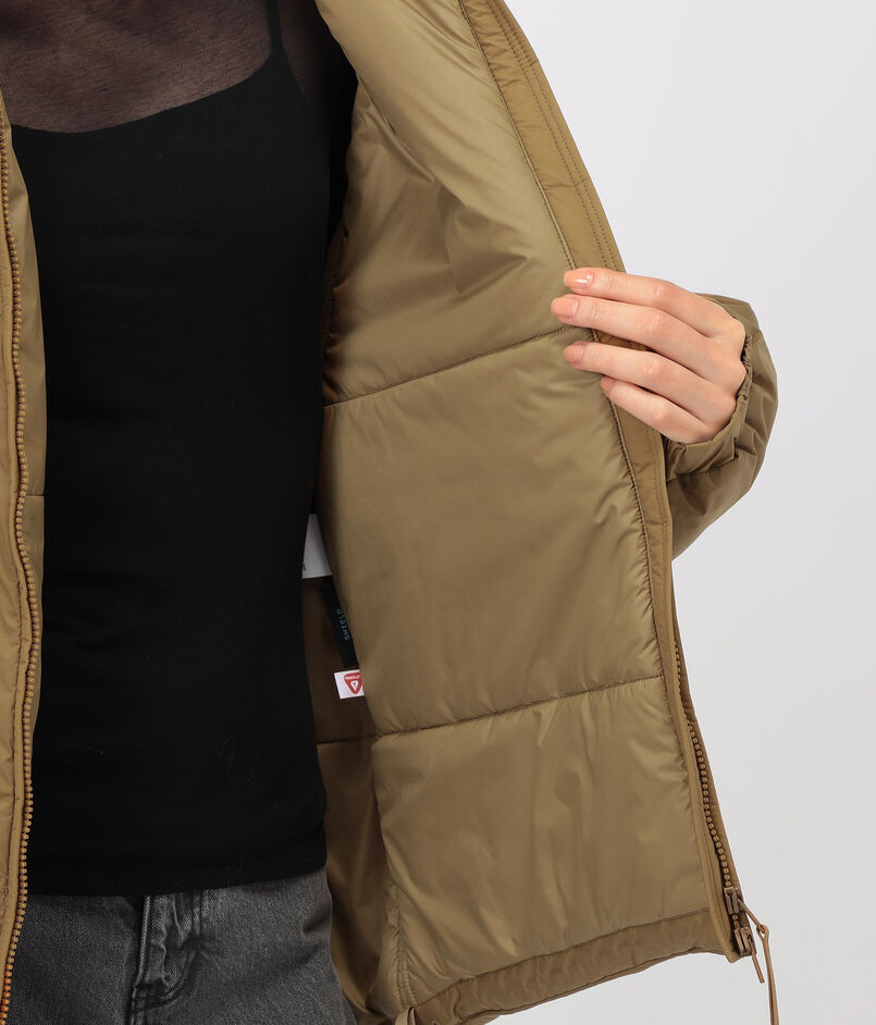 ミリタリーウエアPCU LEVEL 7 TYPE1から着想を得た、ユニセックスモデルのパデッドジャケット。
