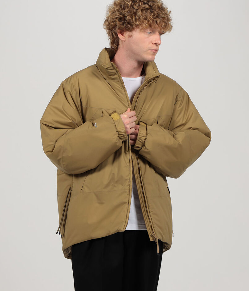 ミリタリーウエアPCU LEVEL 7 TYPE1から着想を得た、ユニセックスモデルのパデッドジャケット。