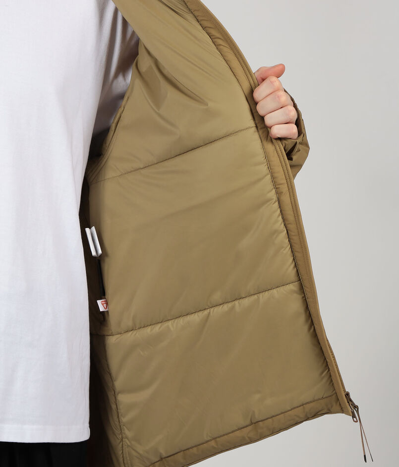 表地には高い防水性を持ちながら通気性にも優れたPERTEX SHIELDを、裏地には防風性と耐久性を有するPERTEX QUANTUMを採用しており、中綿にはPLIMALOFTが使用され、真冬の寒さの中でも快適に過ごせるスペックを備えています。