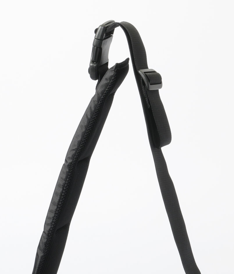 ショルダーストラップのジョイントを活用して、コートなど厚手のアウターを着たままでも簡単に着脱することができます。