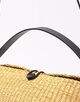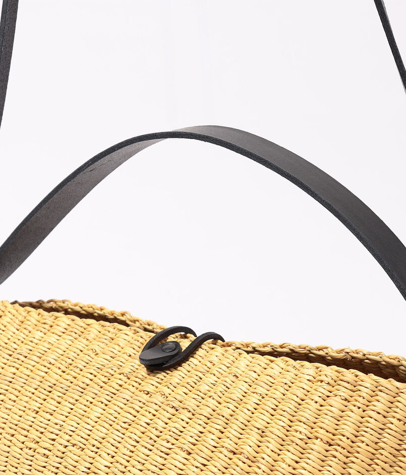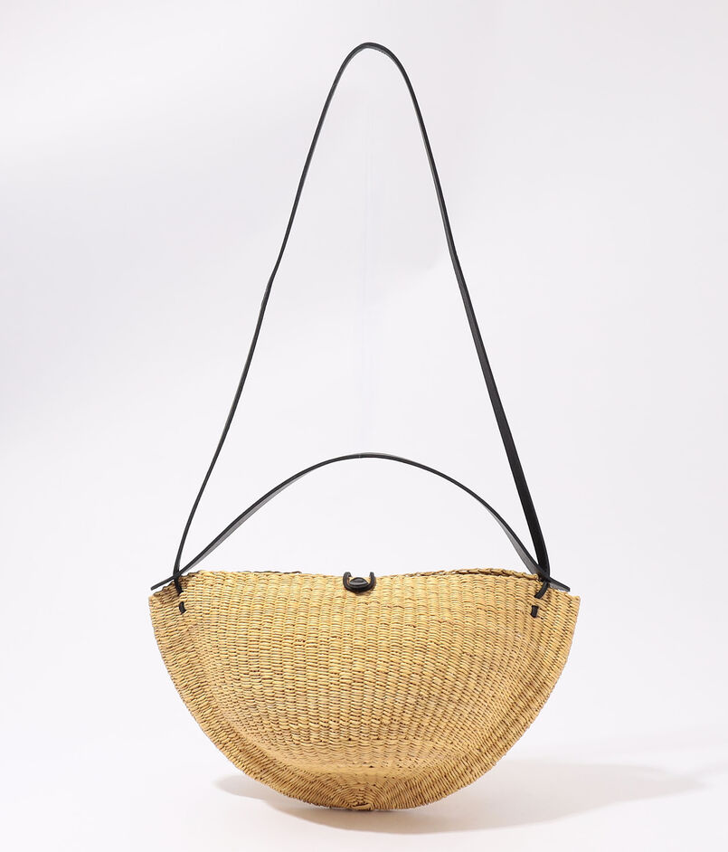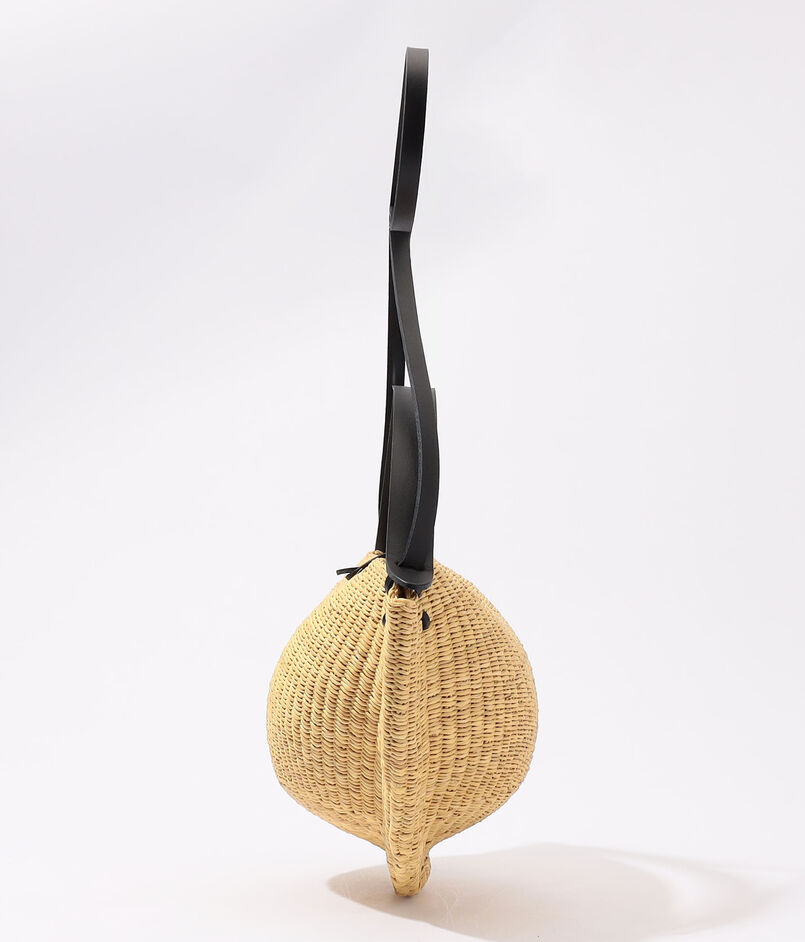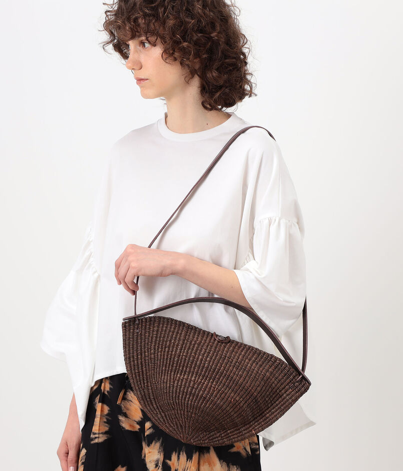 スリムなショルダーストラップと大きめのハンドル、立体的なフォルムのコントラストが魅力です。