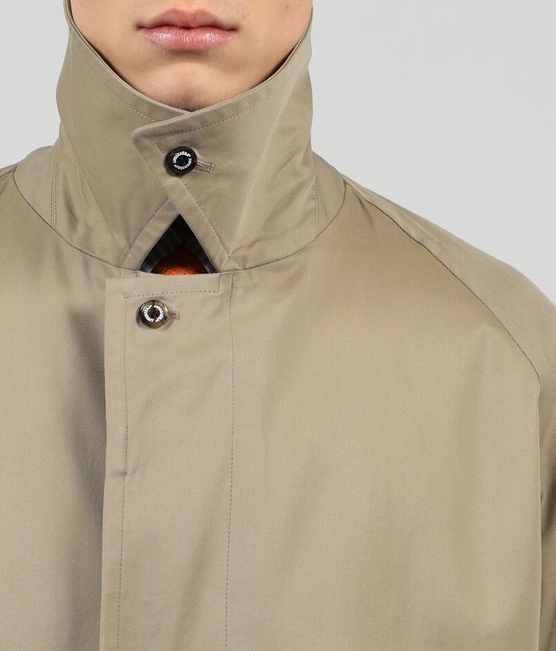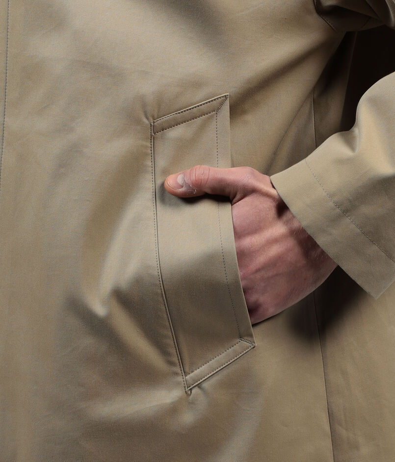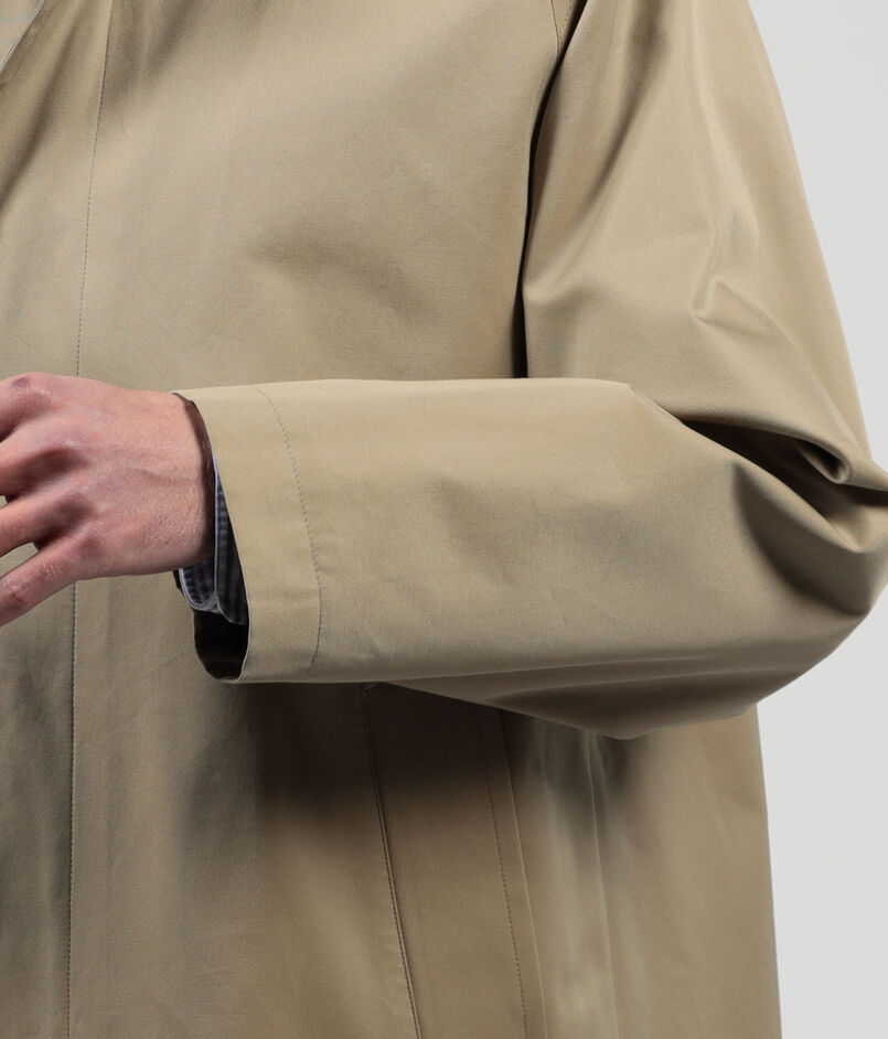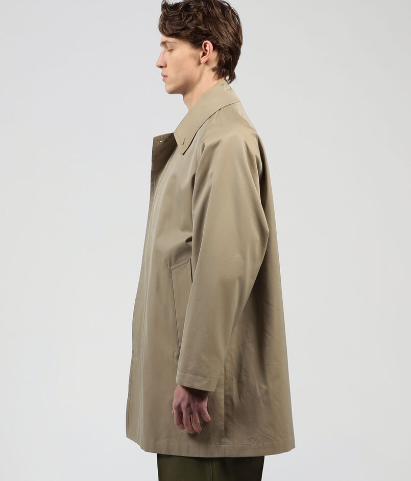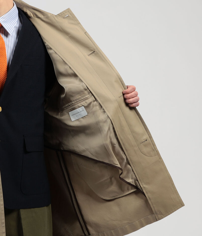 〈TOMORROWLAND〉定番のステンカラーコートをベースに、今の時代性を感じさせるミドル丈にアレンジし、見た目と着心地に軽量感を持たせました。