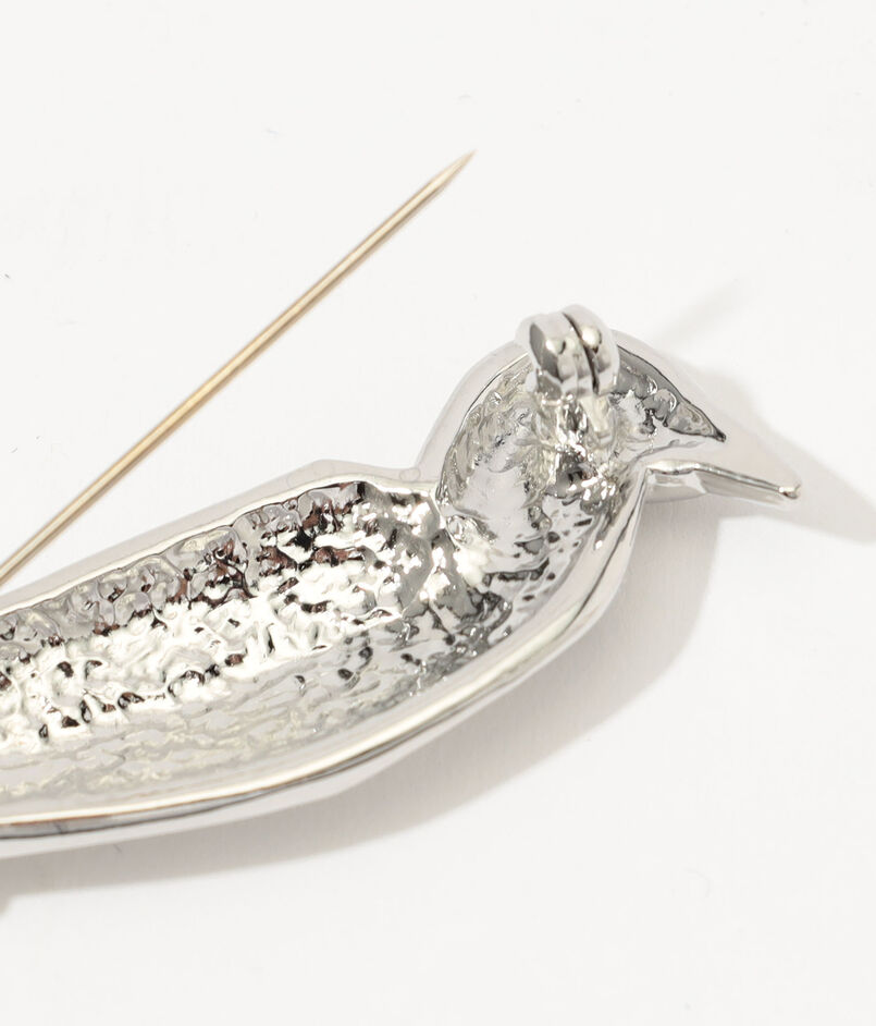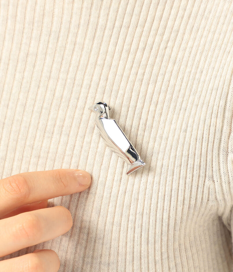 愛嬌のあるペンギンを構築的なフォルムに変換したスタイリッシュなブローチ。