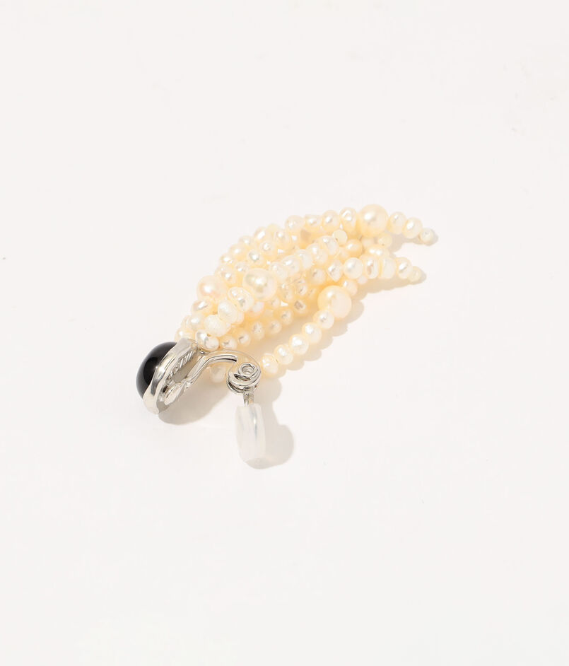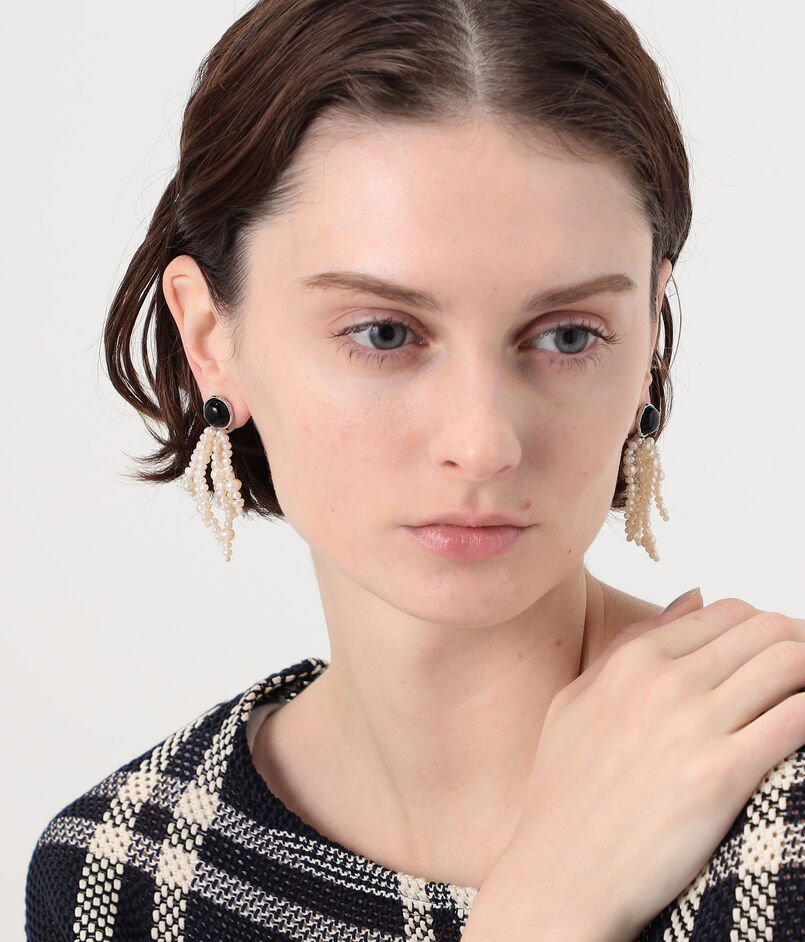 清らかで澄んだ印象の淡水パールとの組み合わせがコントラストを生み、顔まわりに上品な華やかさをくれる一点。