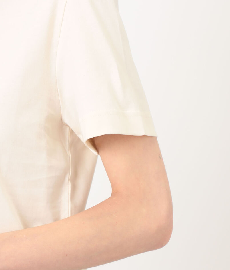 計算された高めのネックラインが、カジュアルな中にも上品且つモードな印象を演出してくれます。