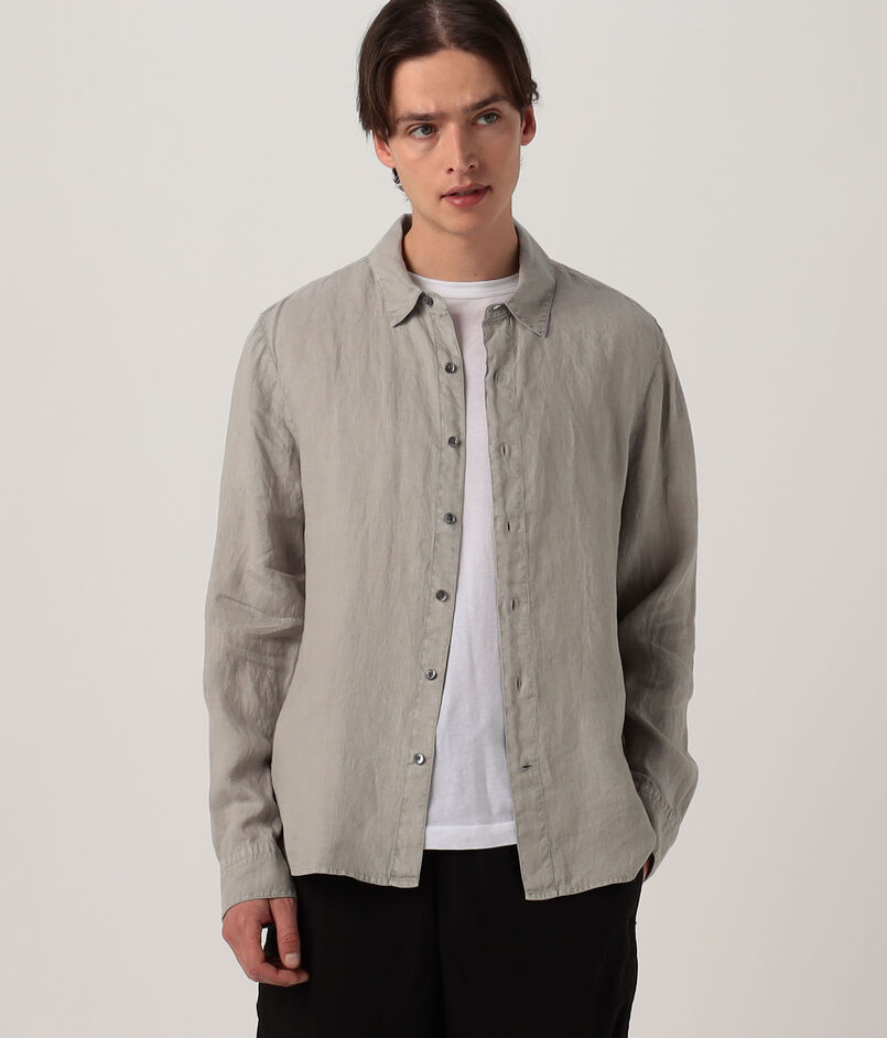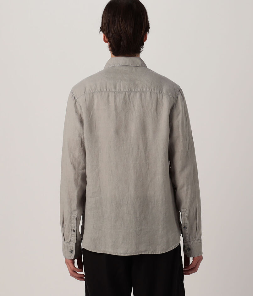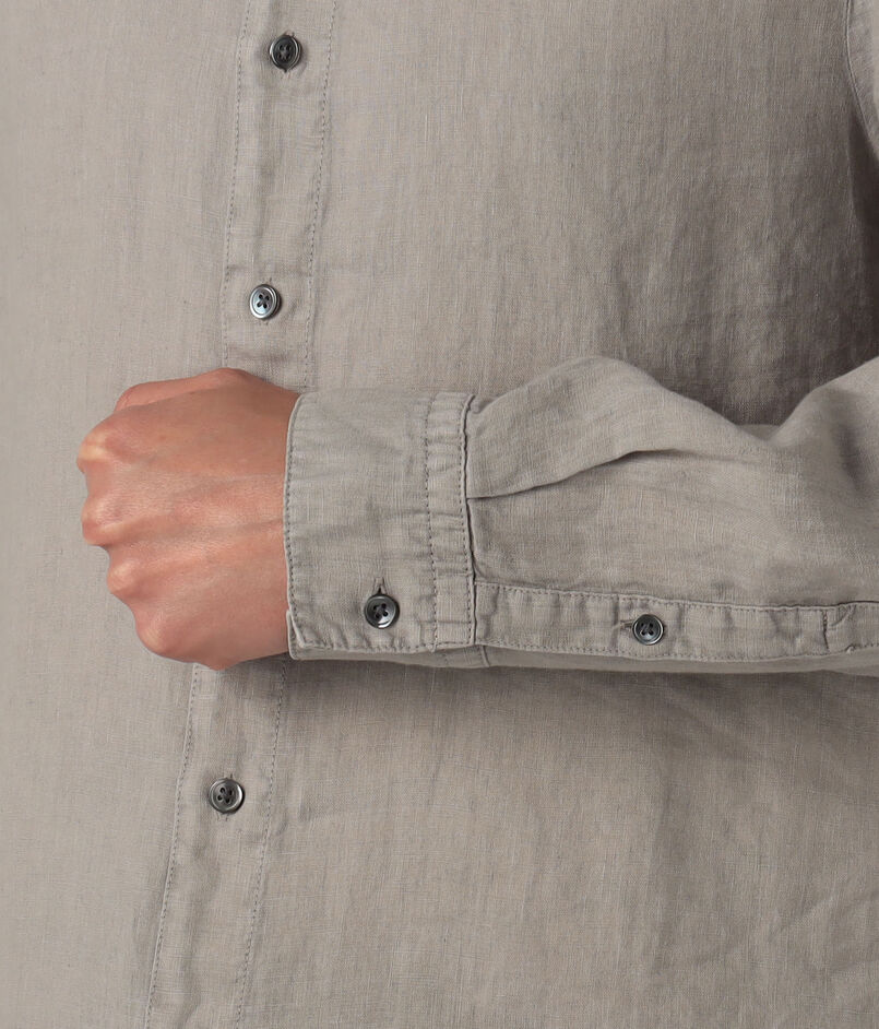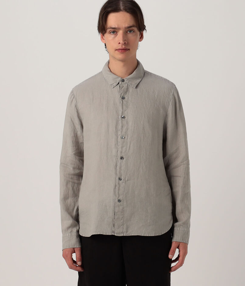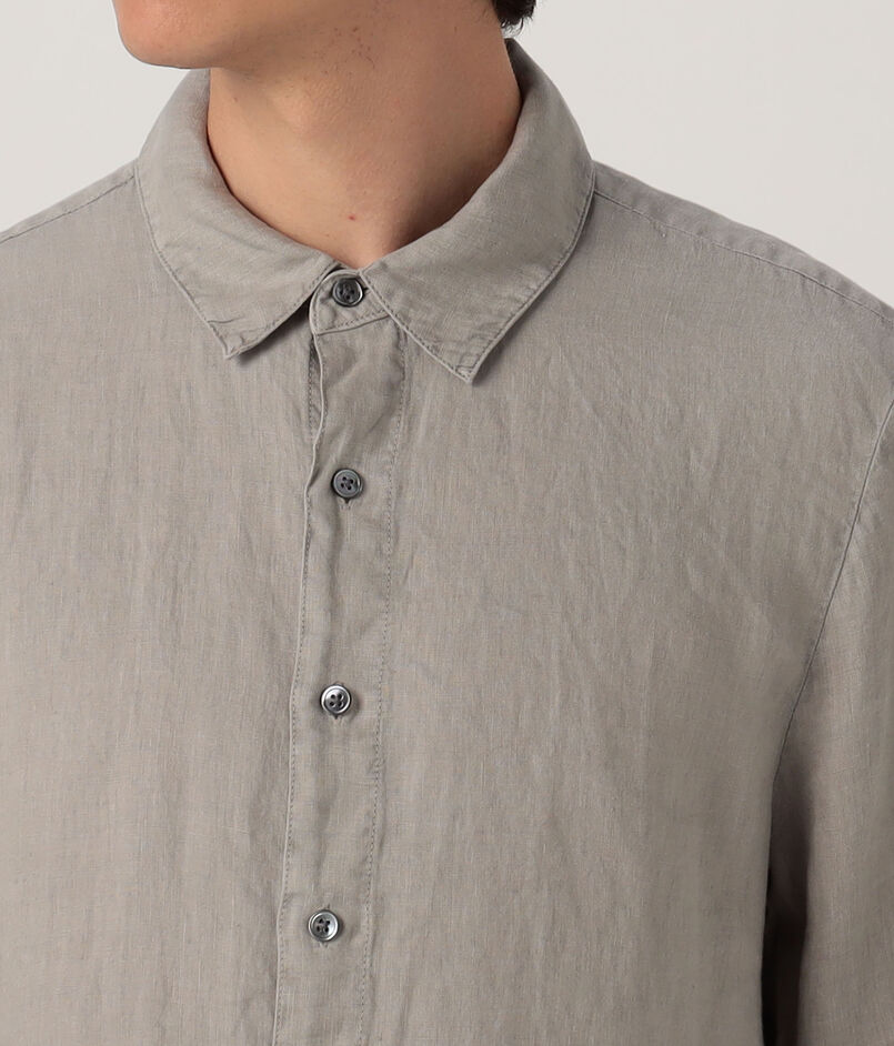 軽やかなリネン素材にガーメントダイ加工を施し、やわらかな風合いに仕上げられたシャツ。