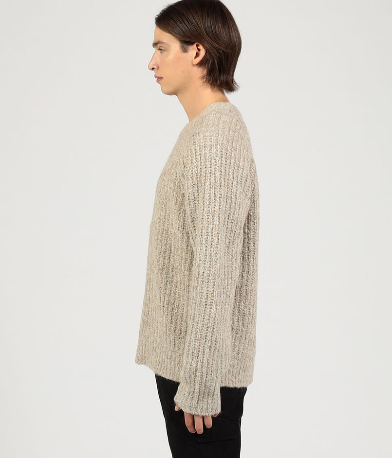 質感のある軽量のウールブレンド糸で編み上げたプルオーバー。