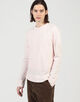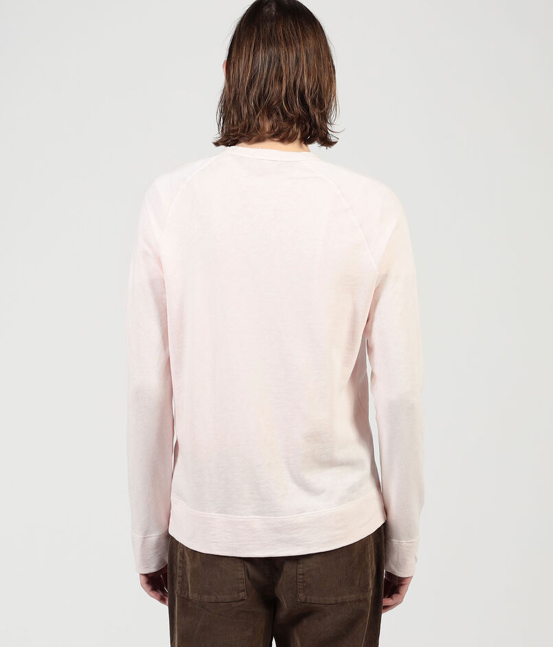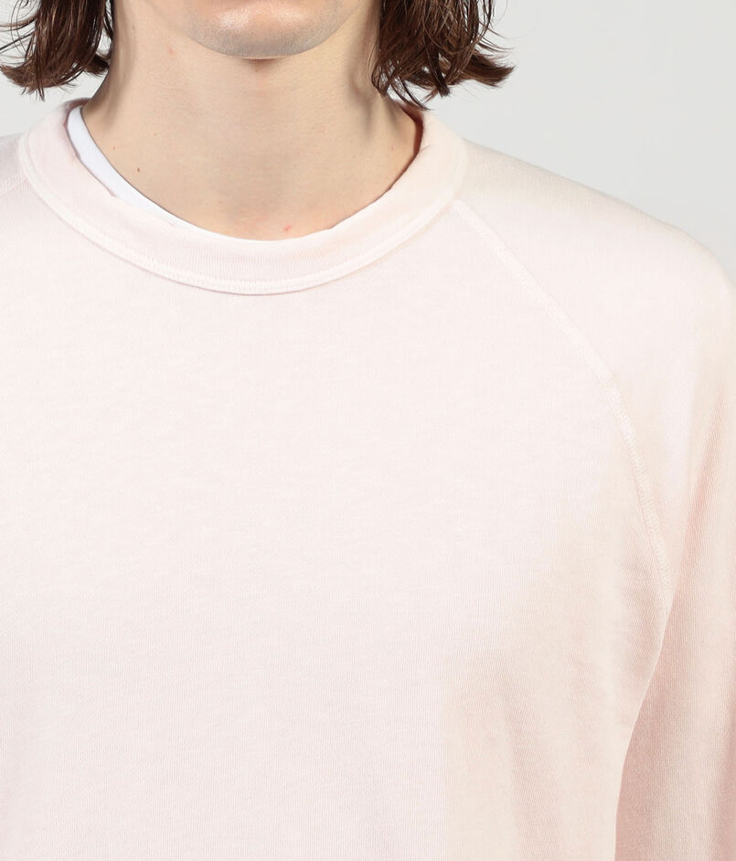 ゆったりとしたシルエットとラグランスリーブ、ほど良いあきのクルーネックでリラックスムード漂う一着。