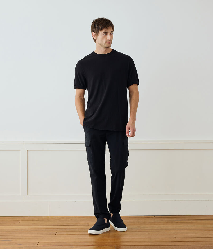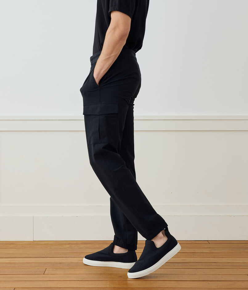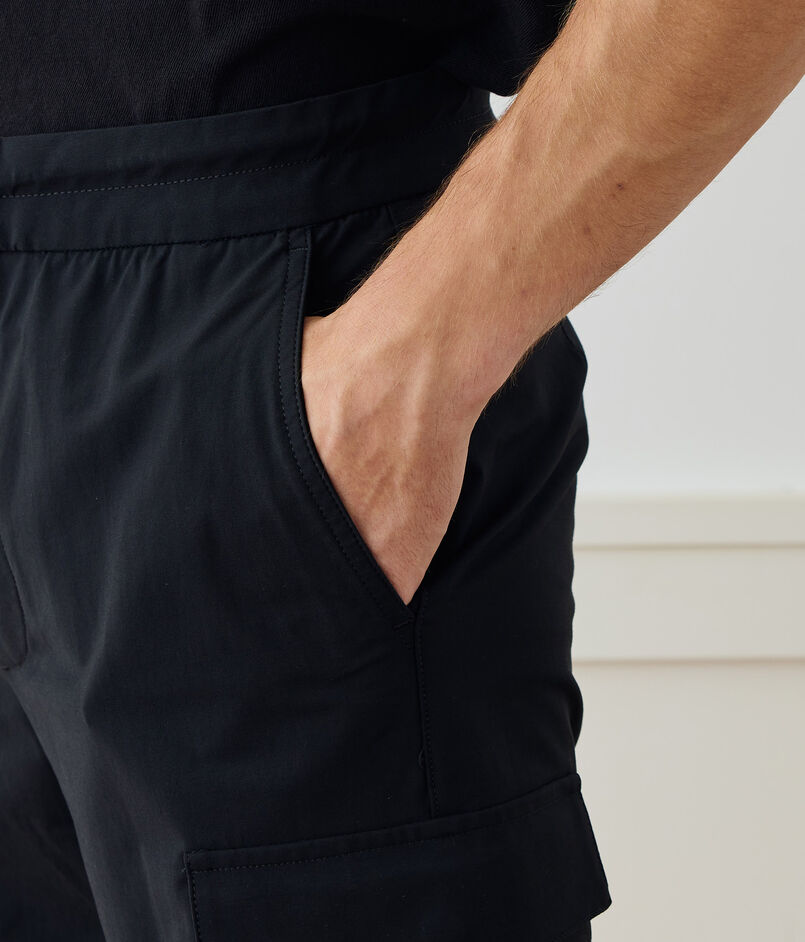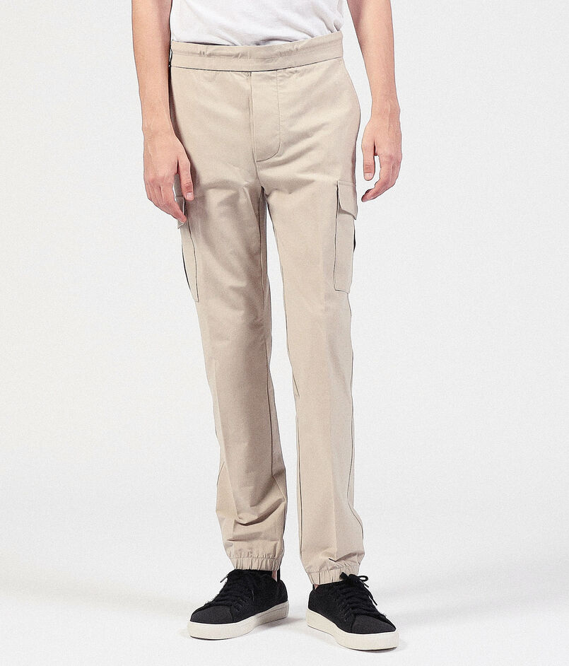 さらりと肌触りの良いコットンナイロン素材で作られたカーゴパンツ。