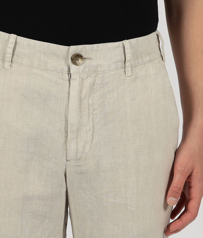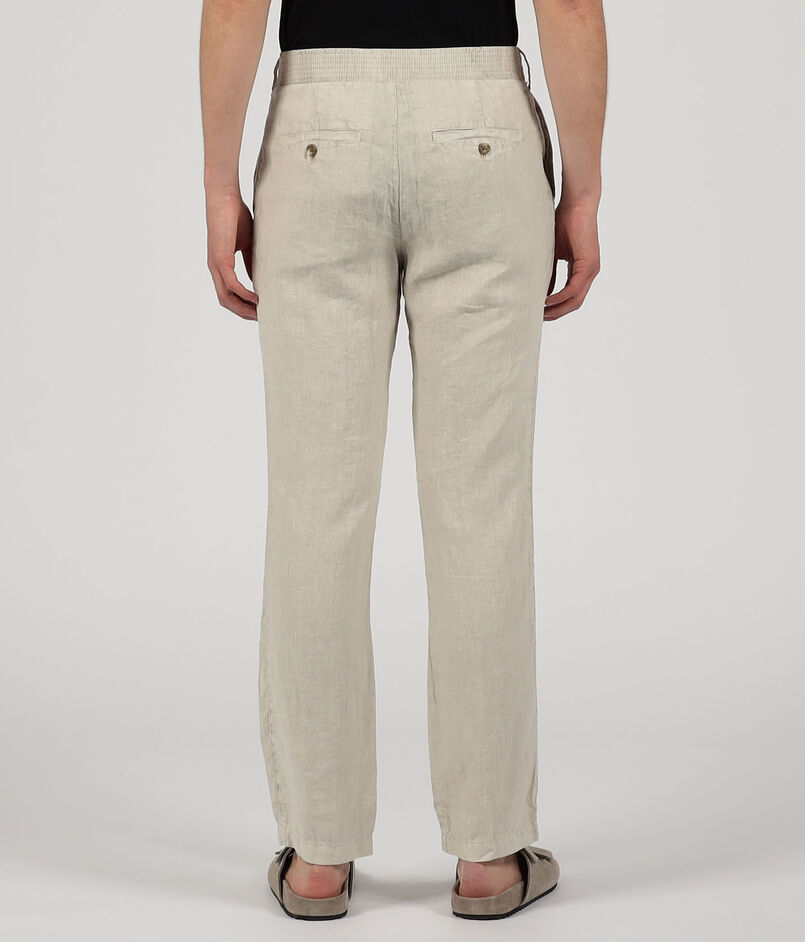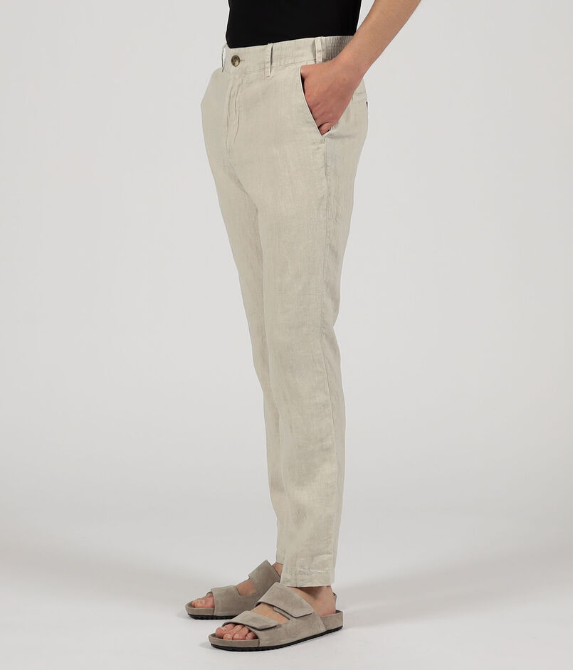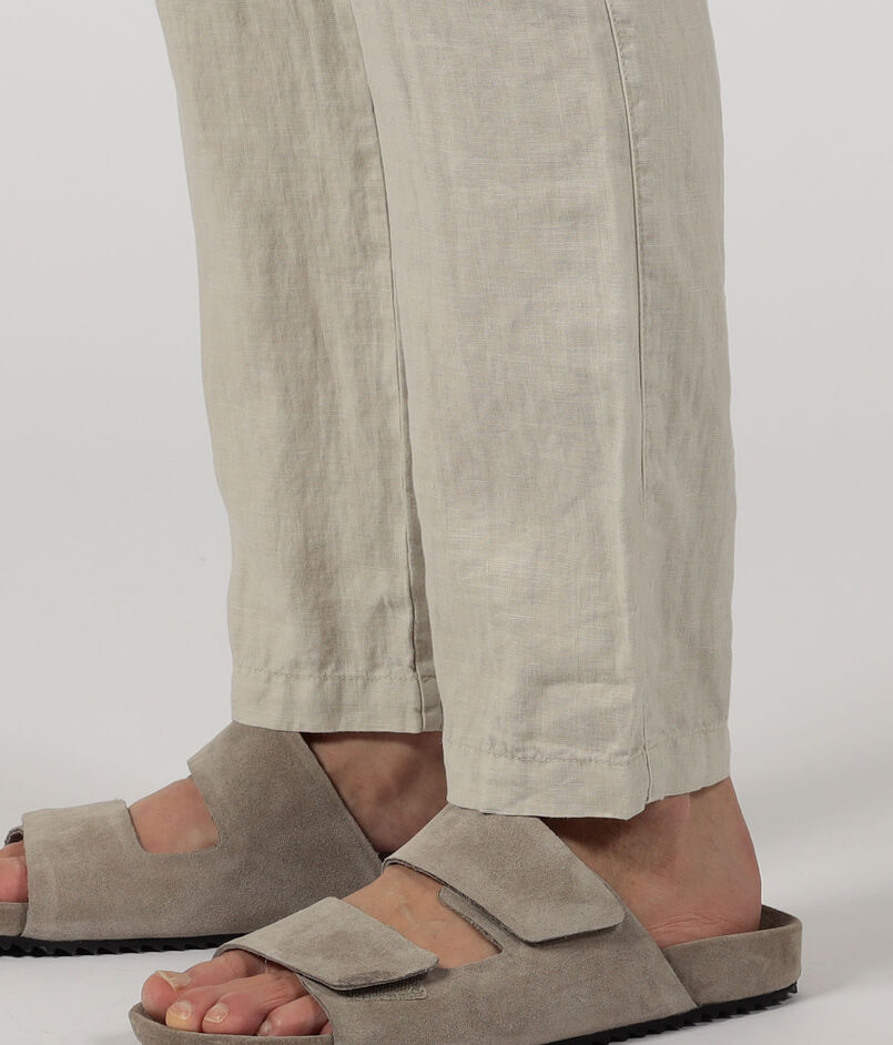 清涼感のあるドライなタッチのリネン素材で作られたパンツ。