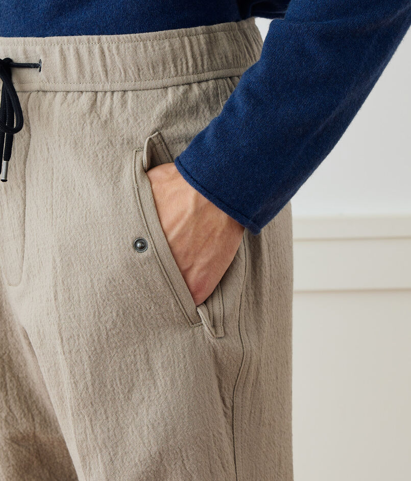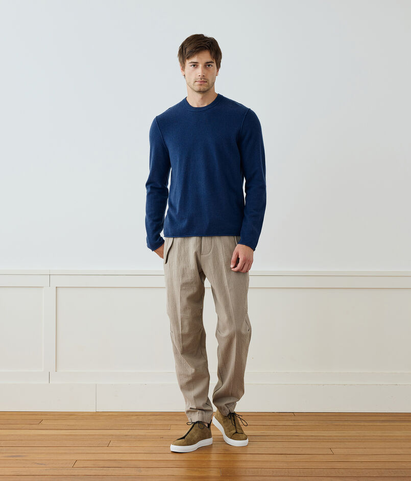 上質なイタリア製のストレッチウール素材で作られたパンツ。