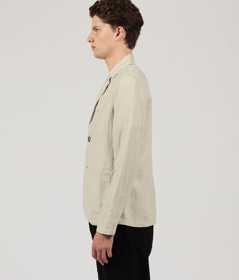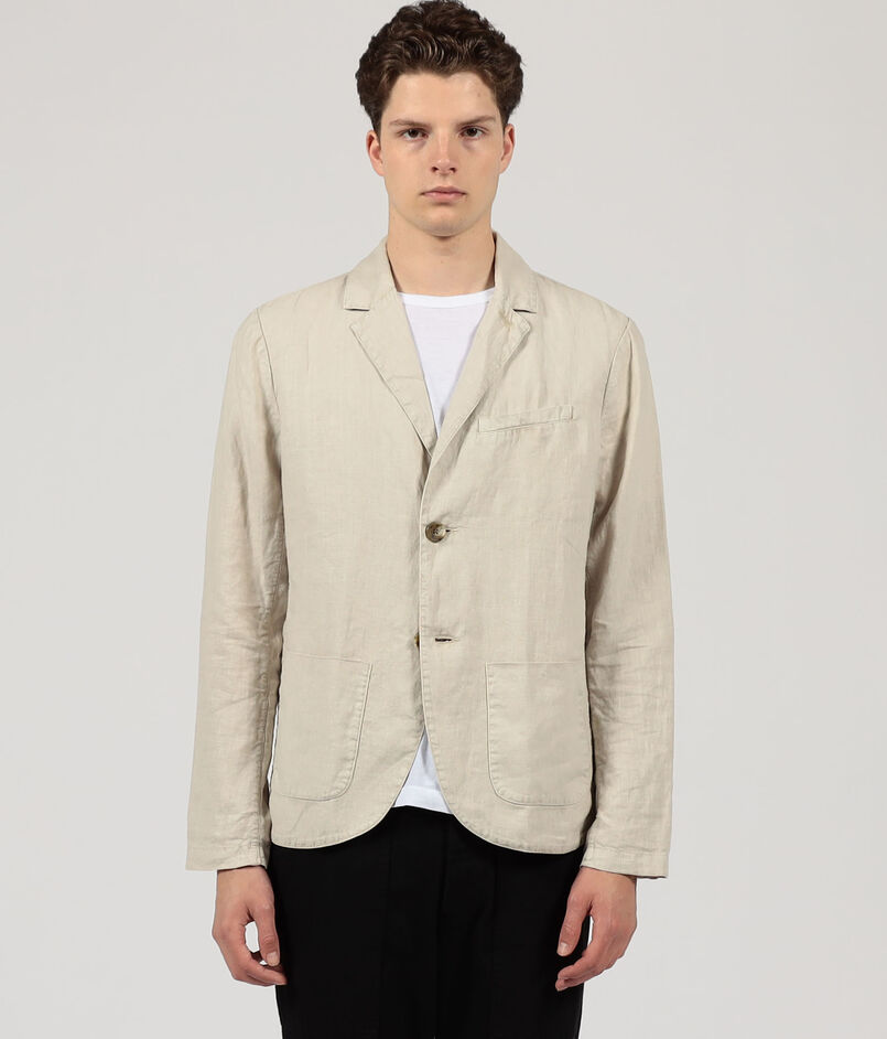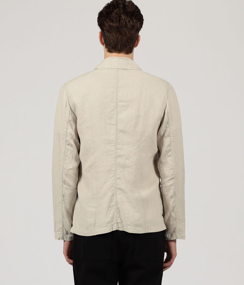 清涼感のあるドライなタッチのリネン素材で作られたジャケット。