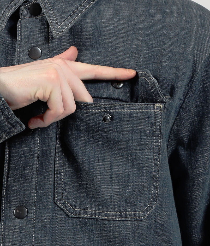 フロントチェストポケットやバックヨークなど、細部にまでこだわって仕上げた一着。
