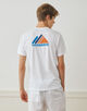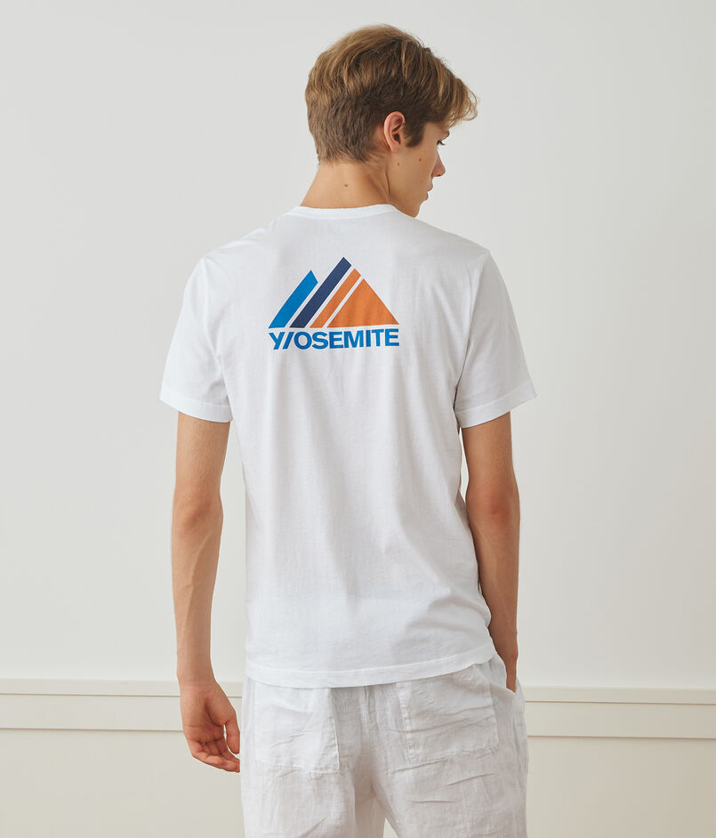 軽量ジャージーを使用したバーマウンテンのグラフィック・クルーネックTシャツ。