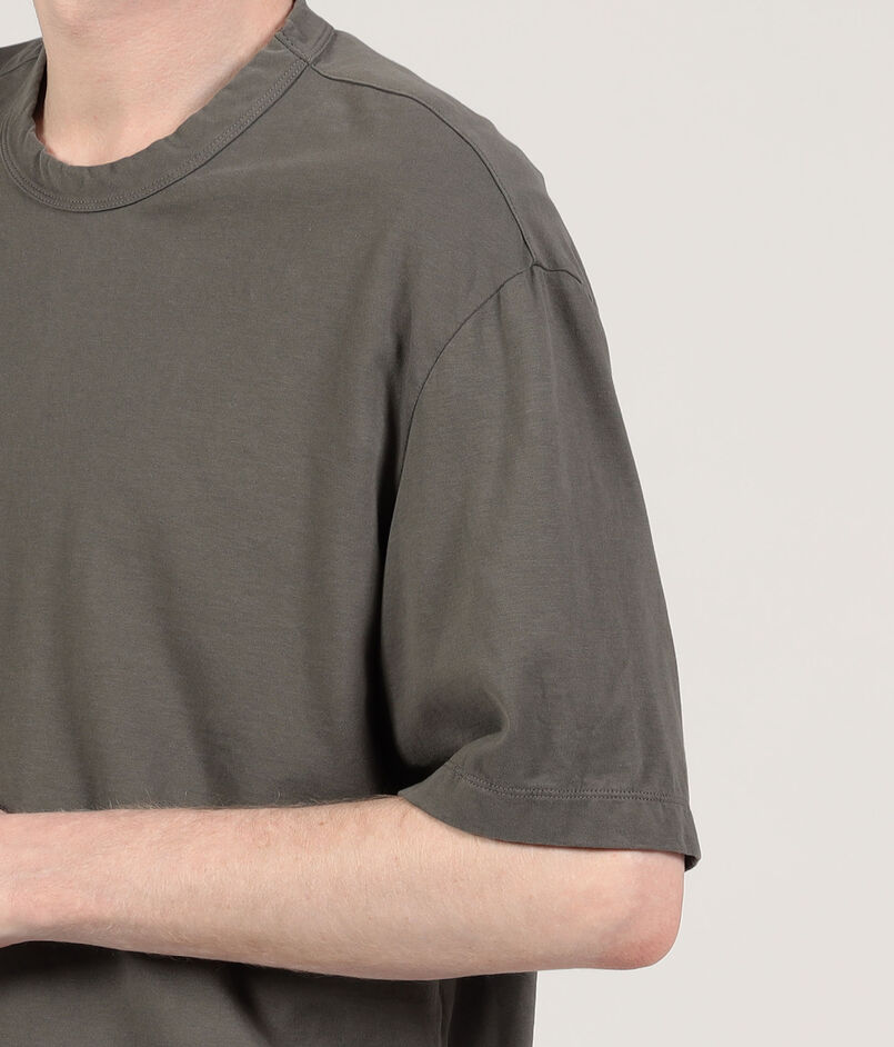 柔らかく高級感のある手触り、美しいドレープ性が特徴の良質なコットンジャージー素材で作られたTシャツ。