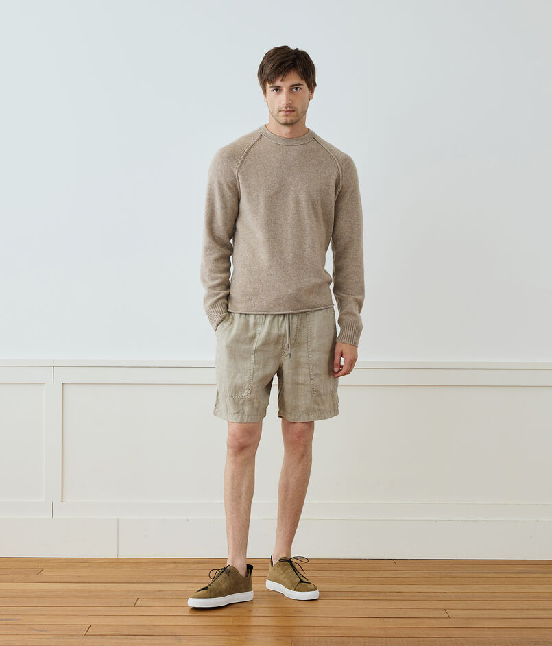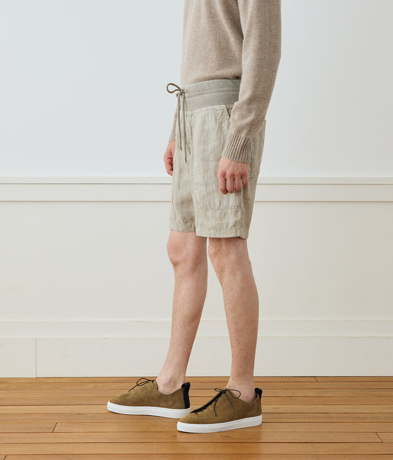清涼感のあるドライなタッチのリネン素材で作られたショートパンツ。