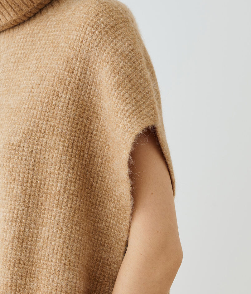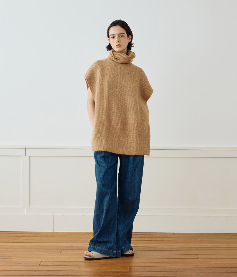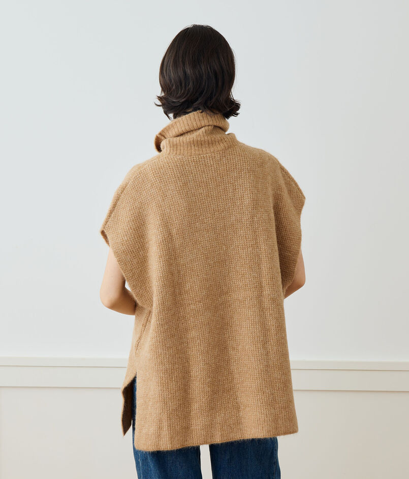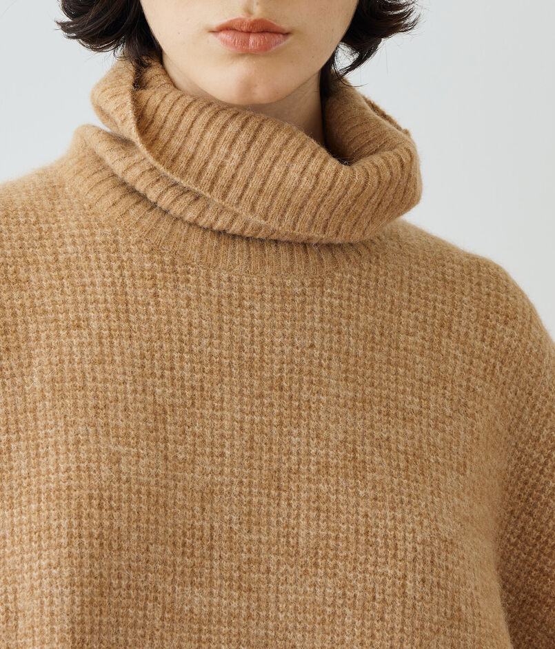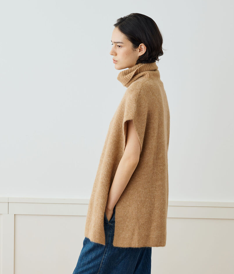 リブ編みの大胆なファネルネックにサイドスリットなど、細部にまでこだわったで仕上げられています。