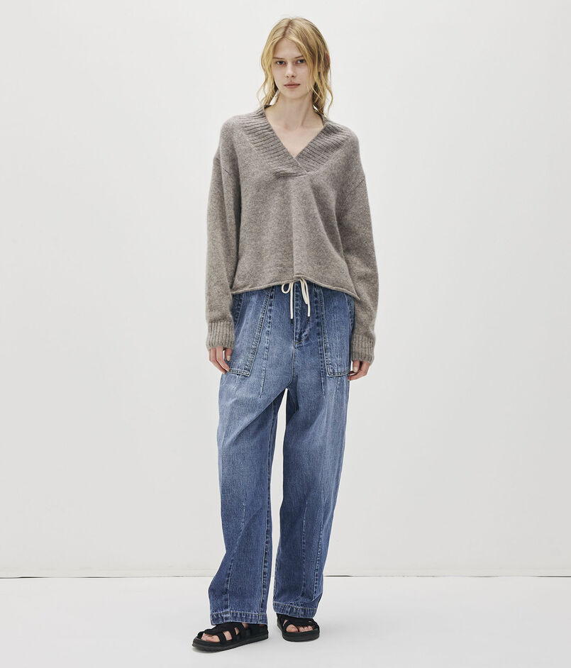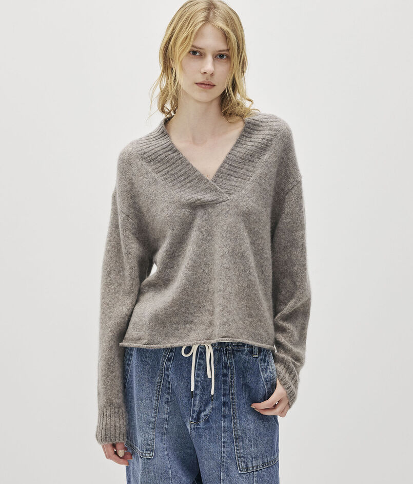 重なり合うワイドなVネックラインがポイントです。