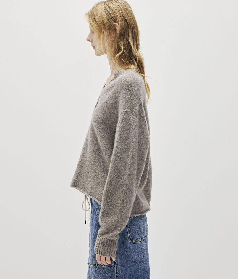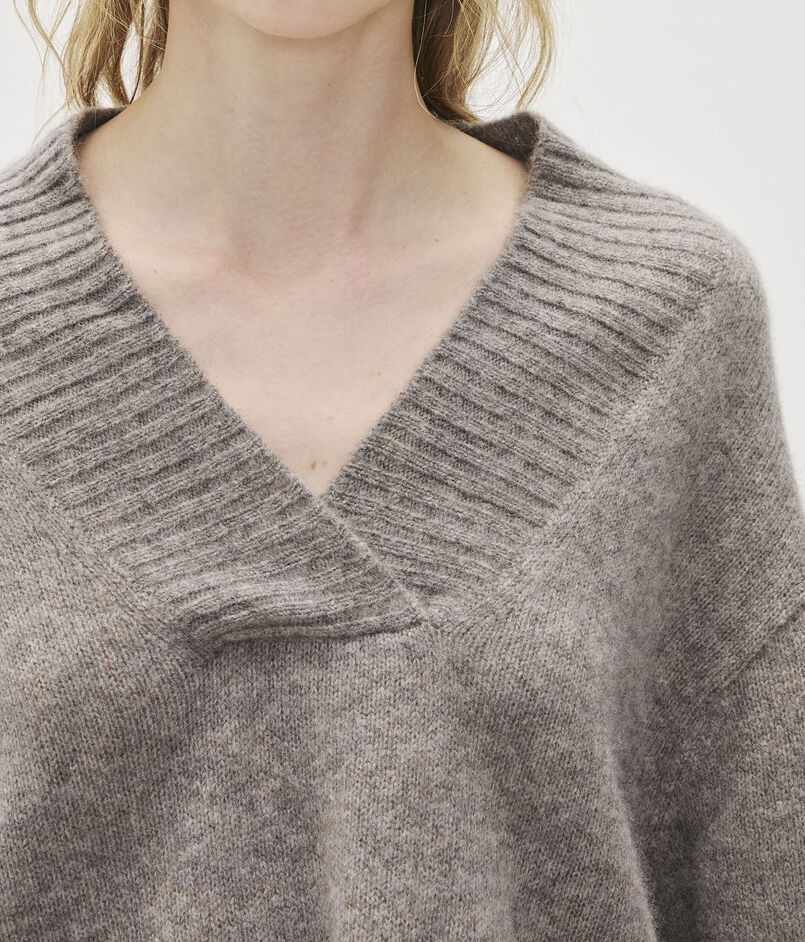 高級感のある軽量カシミヤ素材で作られたVネックニット。