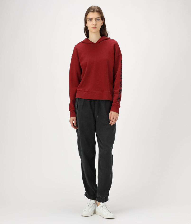 ロングループフレンチテリー生地を使用して作られたパーカー。