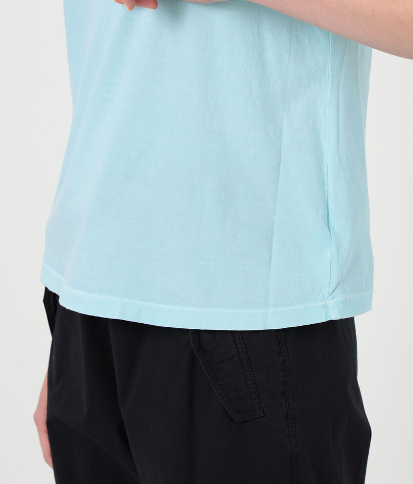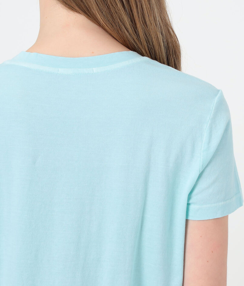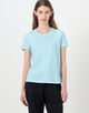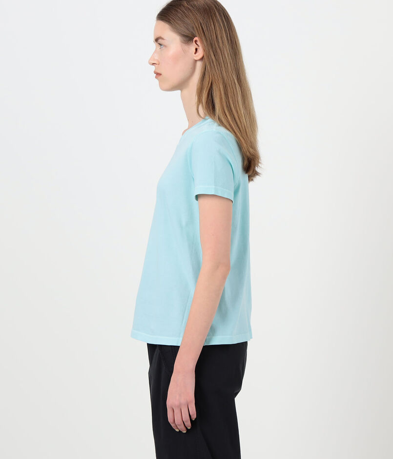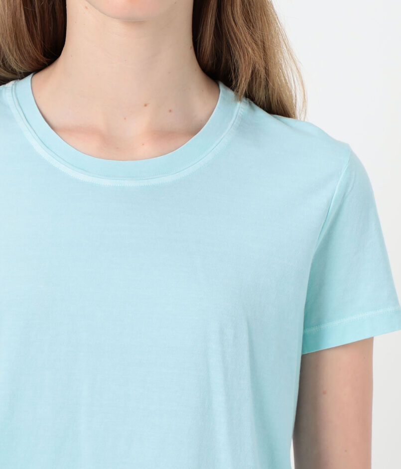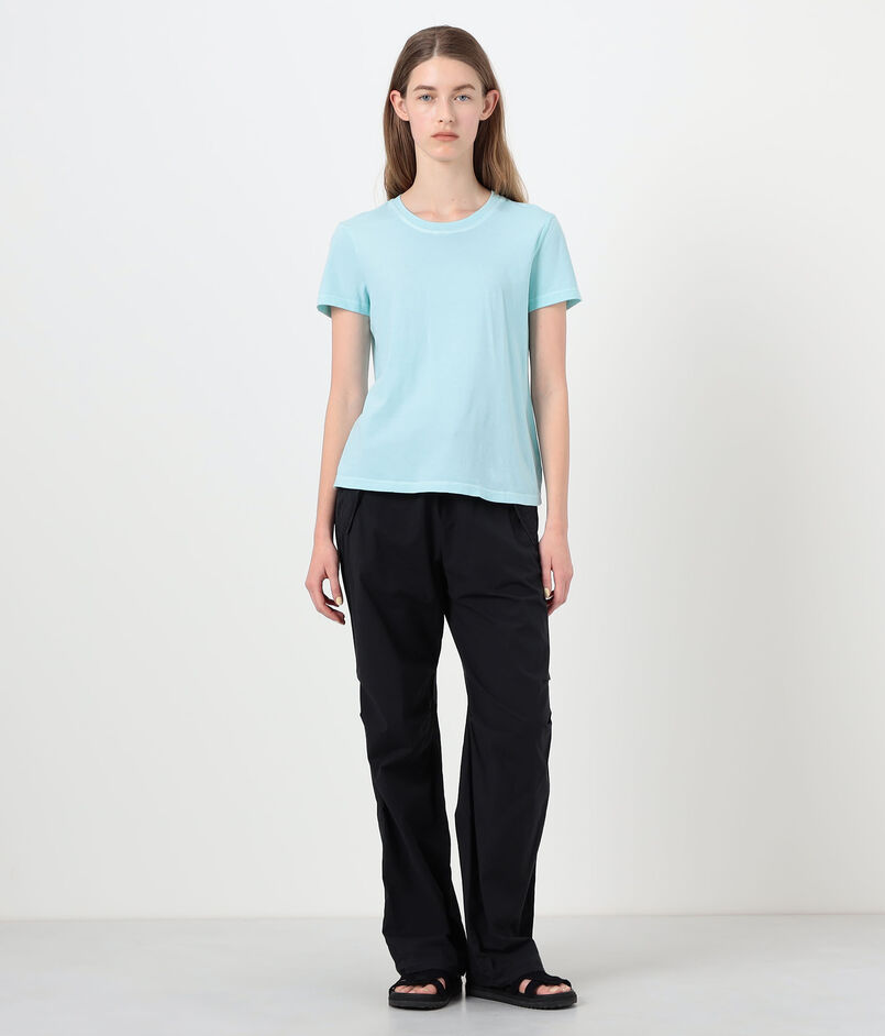 着心地の良いライトウェイトな素材感と襟ぐりの絶妙なあき具合が魅力。