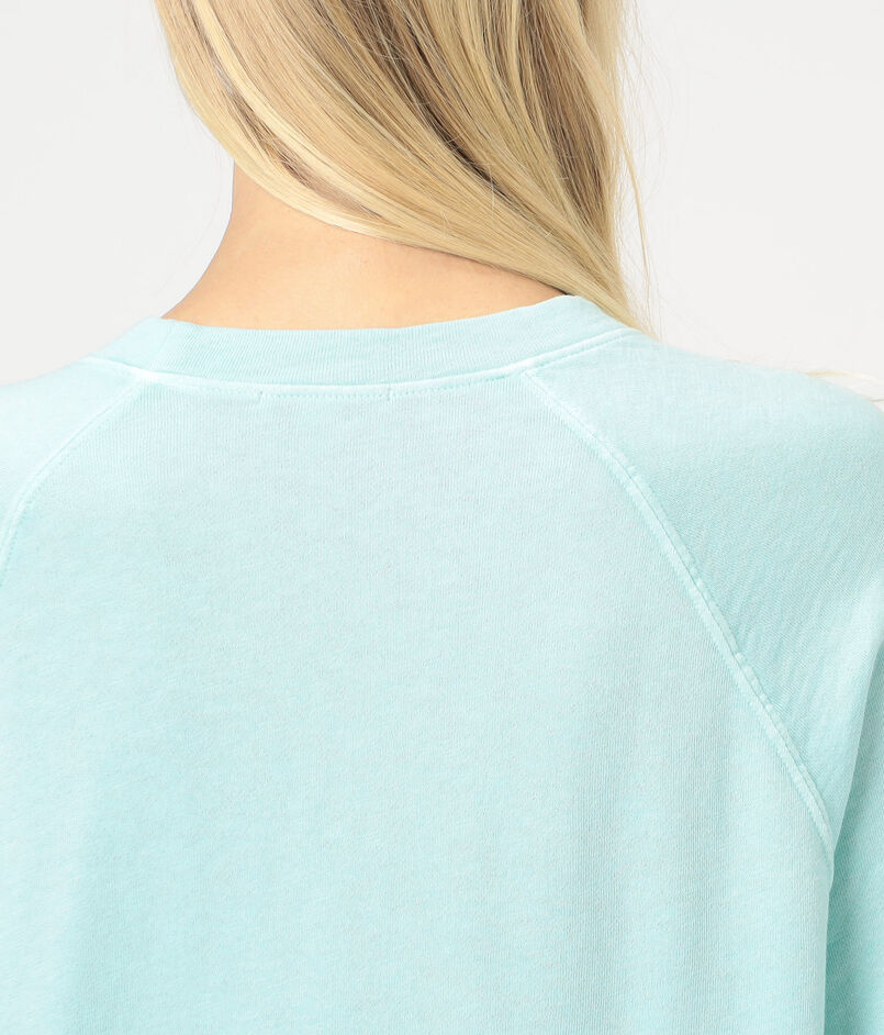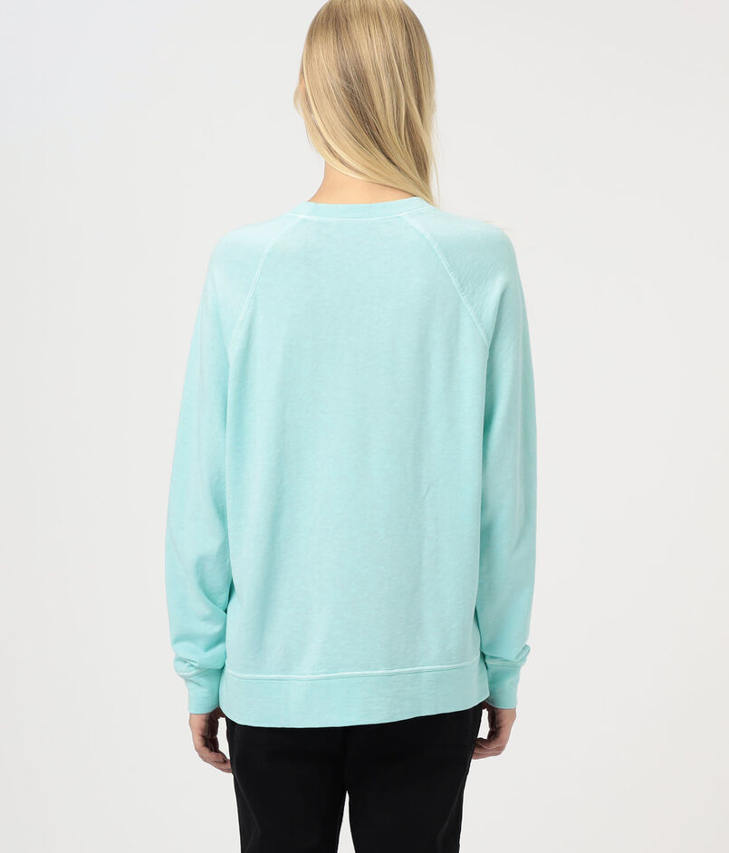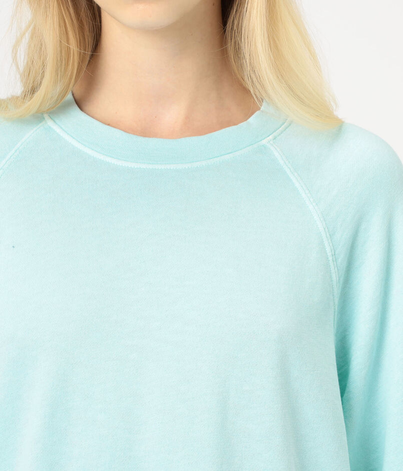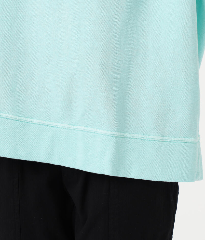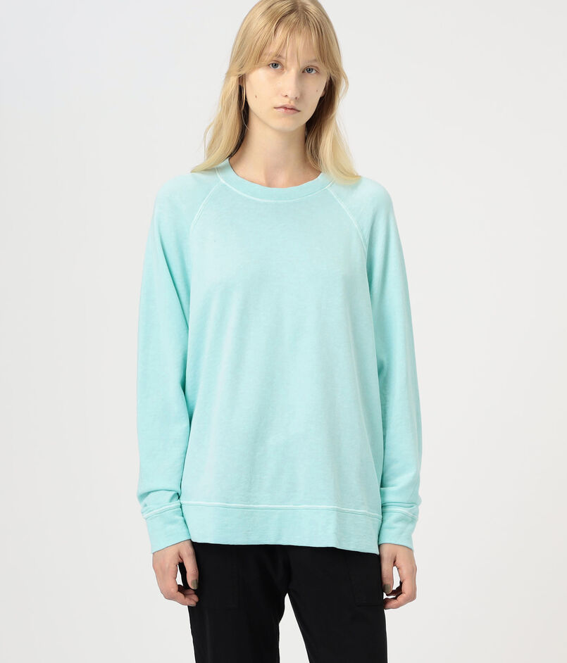 ゆったりとしたシルエットとラグランスリーブ、ほど良いあきのクルーネックでリラックスムード漂う一着。