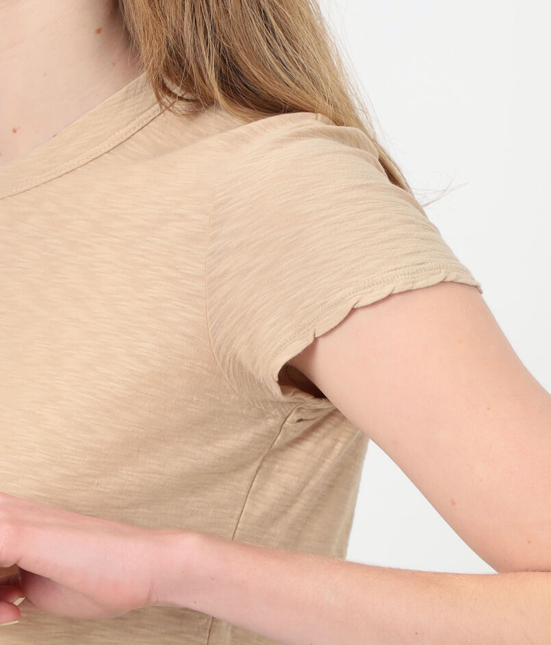スラブ糸ならではの清涼感のある表情が魅力的なTシャツ。