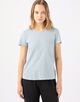 着心地の良いライトウェイトな素材感と襟ぐりの絶妙なあき具合が魅力。