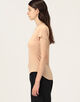 着心地の良い伸縮性に優れた素材と、クルーネックの襟ぐりのフィット感がポイントです。
