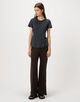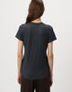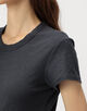 着心地の良い伸縮性に富んだ素材感とクルーネックの襟ぐりのフィット感がポイントです。